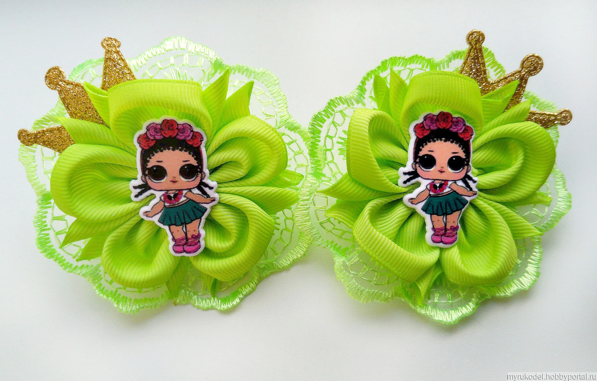 Ярко-салатовый цвет. Очень красивый. Выполнен на резинке 3 см. Цена указана за пару бантиков.