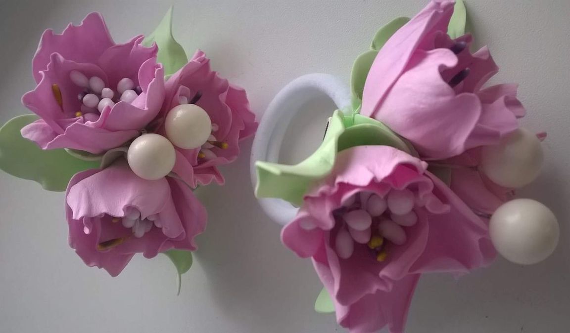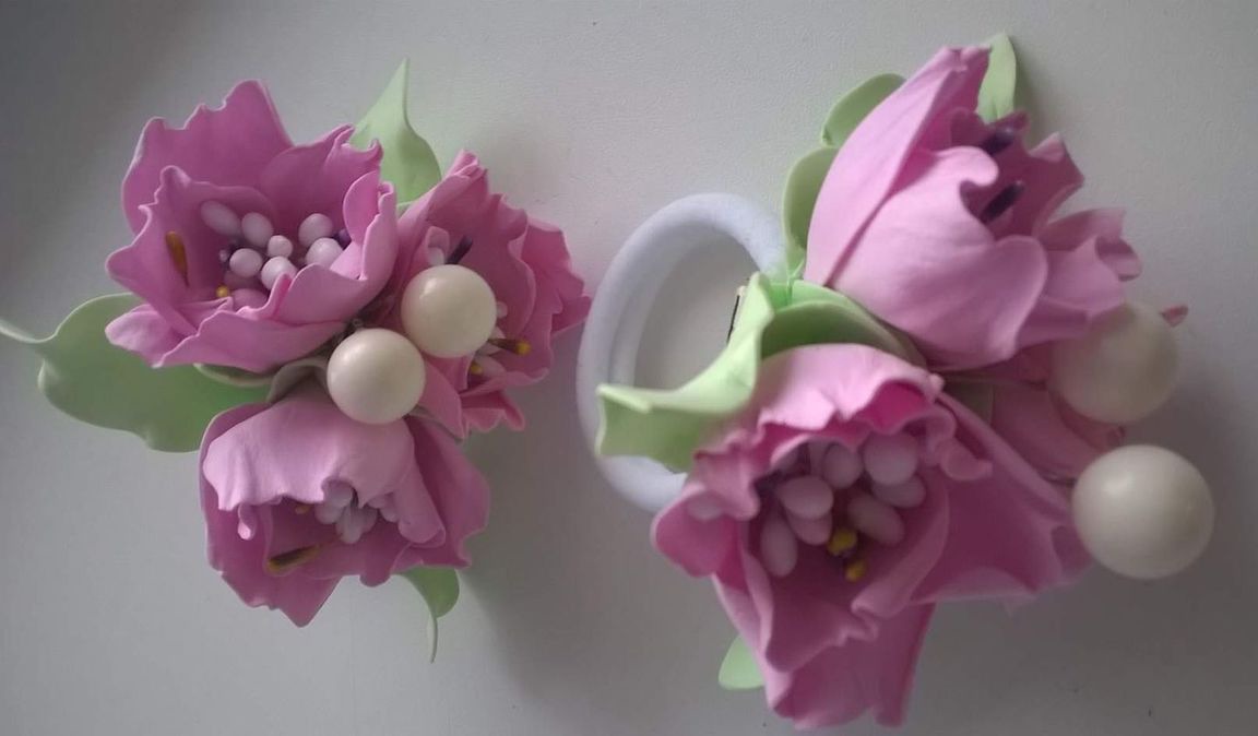Резинки для волос "Цветочки" сделаны из фоамирана с добавлением декоративных ягодок