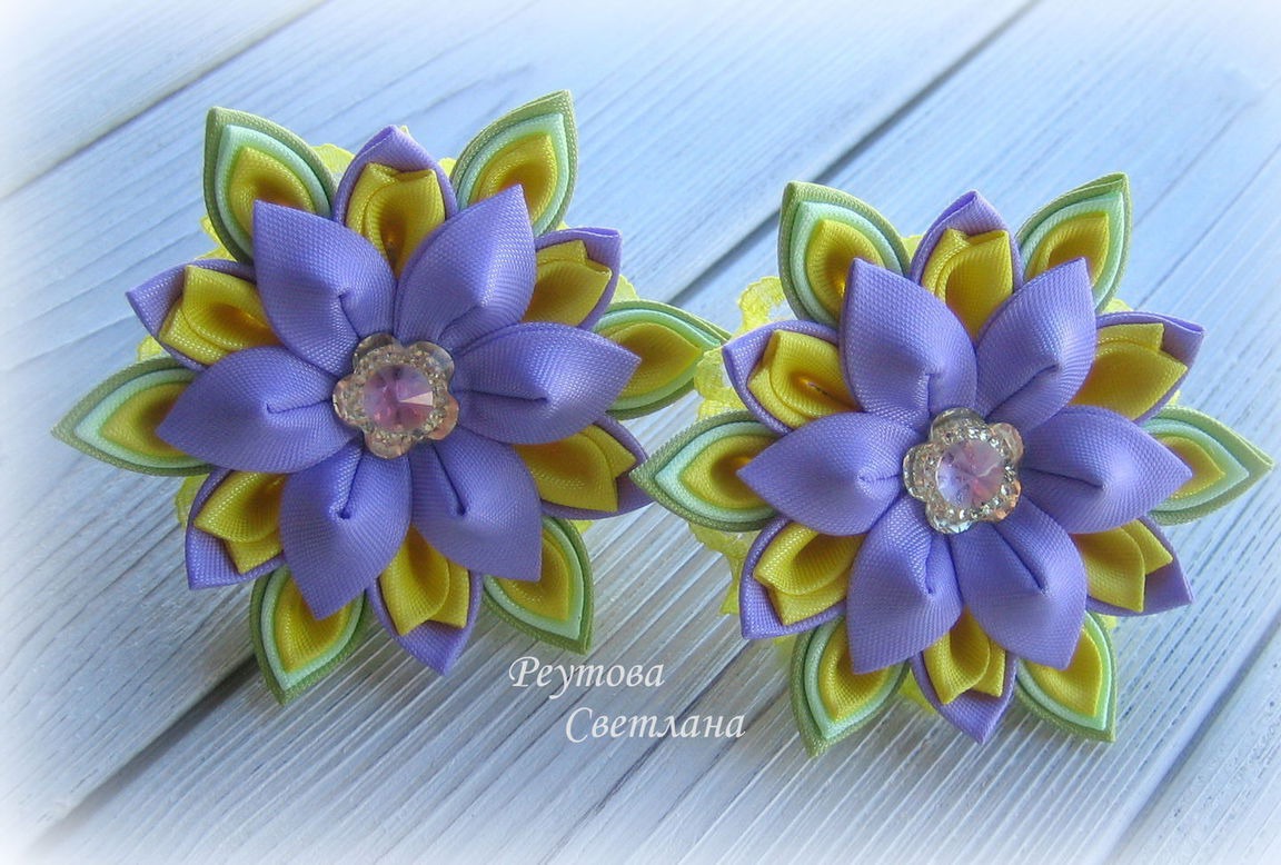 Резинки из атласной ленты в технике канзаши изготовлены вручную.