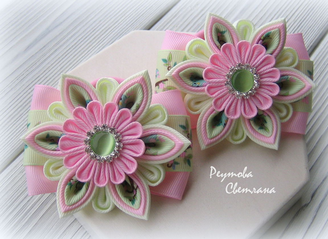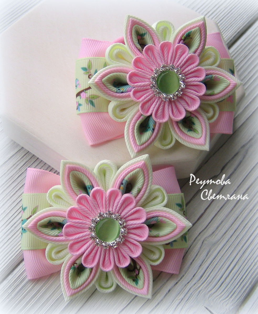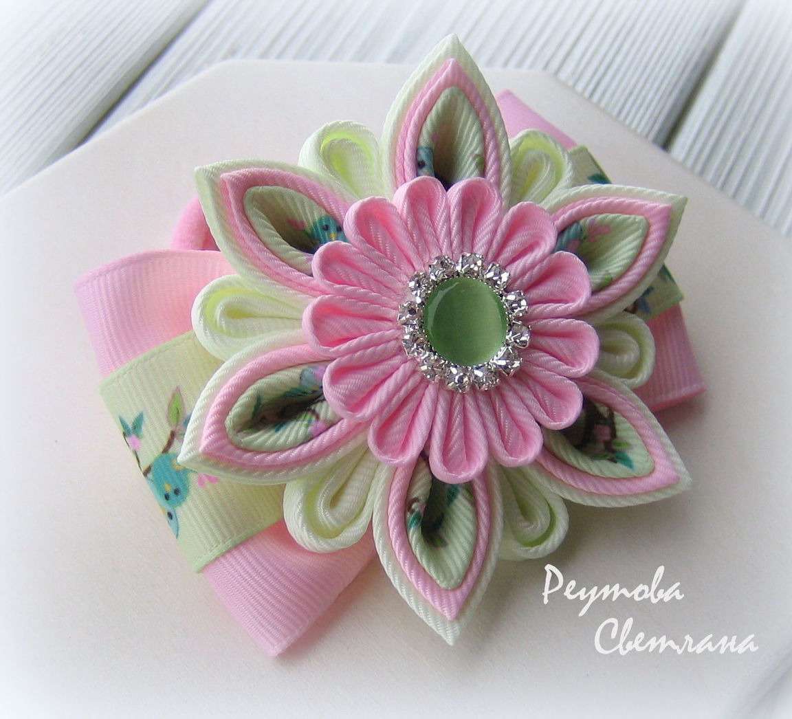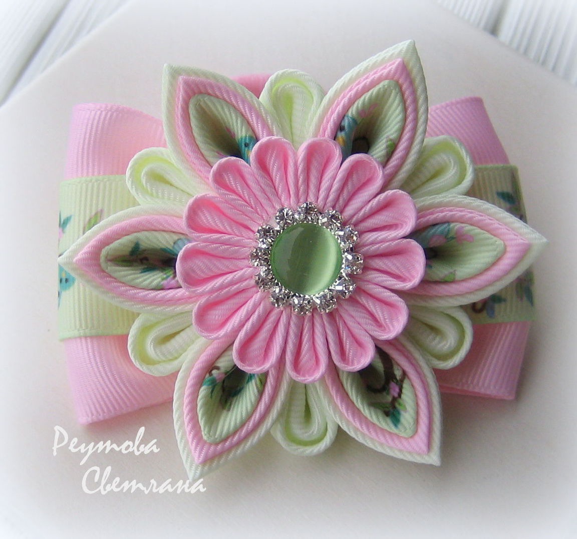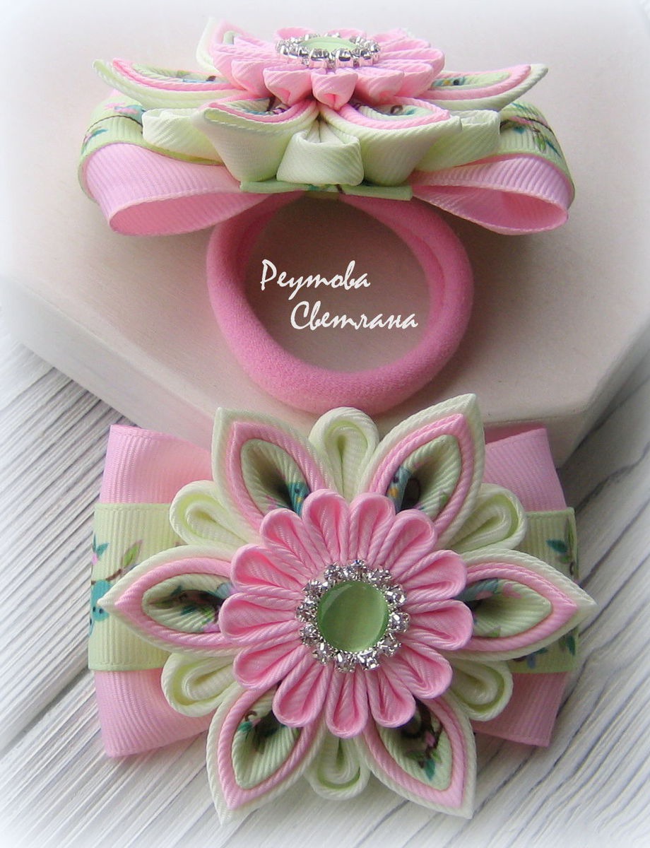 Резинка из репсовой ленты в технике канзаши изготовлены вручную.