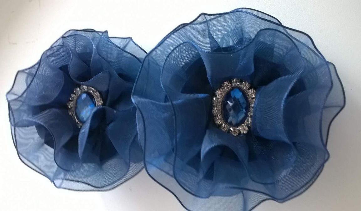 Нежные бантики "Синяя мечта" изготовлены из качественной ленты (органза+сатин), которая переливается на свету и декоративной серединки со стразами