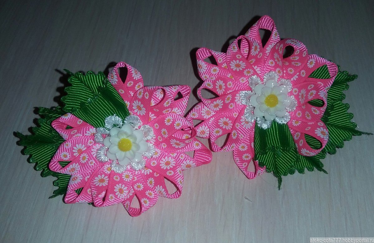 Бантики для волос "Ромашки". Выполнены из качественных репсовых лент. Яркие, летние! Приближается прекрасный праздник - День семьи, любви и верности (8 июля). Символ этого праздника - ромашка. Бантики могут стать прекрасным подарком для маленькой леди. Размер 8см.