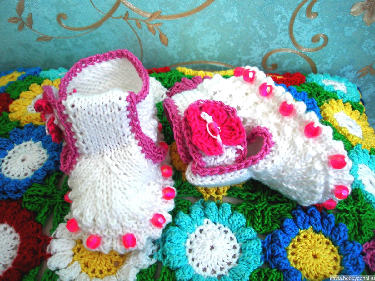 Пинетки -сандалики для малыша 3-6 месяцев. Изделия связаны из дышащей хлопковой пряжи , ножкам ребенка будет комфортно и в жаркий летний день и в прохладный вечер . Размер пинеток 8-9 см . Бусинки ввязаны в изделие .В наличии и под заказ