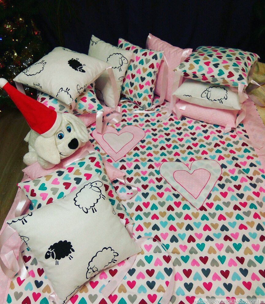 Бортики на 4 стороны + постельное белье (наволочка, простынь на резинке, пододеяльник с вышивкой) для стандартной кроватки 120*60 см. Ручная работа. Ткань сатин, наполнитель гипоаллергенный холлофайбер. Воплощу любую Вашу идею в жизнь )) Помогу с выбором ткани. Срок изготовления на заказ 5-7 дней. С радостью отвечу на все вопросы ))