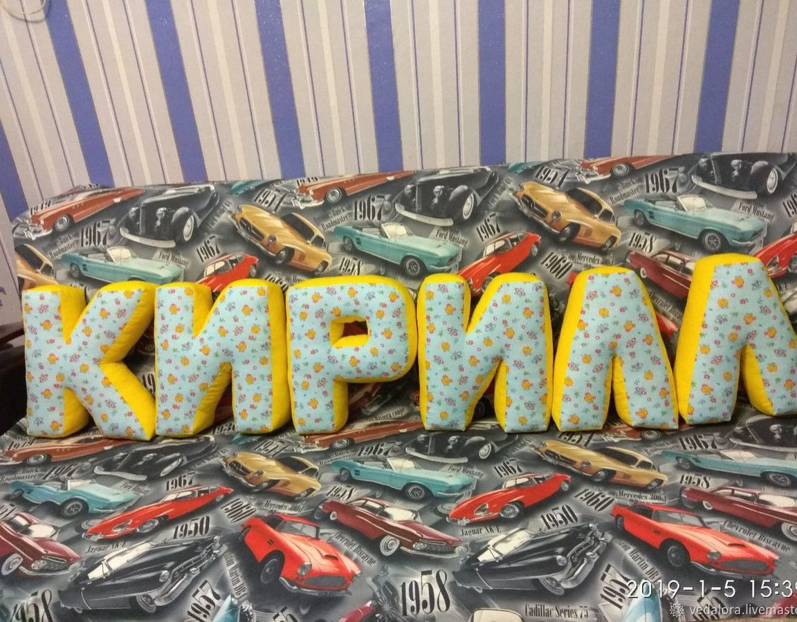 Буквы и цифры - подушки из ткани. Сшиты из хлопка, набиты синтепоном. Подойдут для подарка на день рождения ребёнка, взрослого. Как бортики в кроватку. Для украшение к празднику, фотосессий. Можно заказать одну большую букву, украсить её бантиком, бабочкой, фетровой игрушкой, короной. Можно заказать имя целиком. Или целый алфавит для изучения букв. Для этого подойдут буквы размером 15 на 15 см, толщиной 3 см.