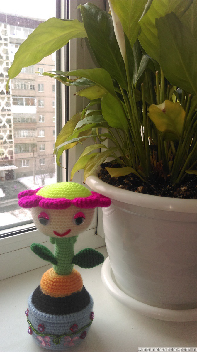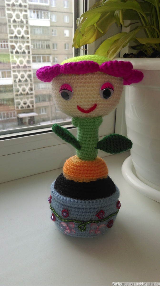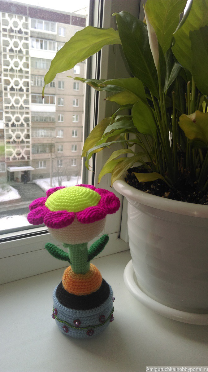 Декоративный вязанный цветочек всегда поднимет вам настроение и смотрится отличным дополнением к интерьеру. Наполнитель гипоалллергенный синтепух.