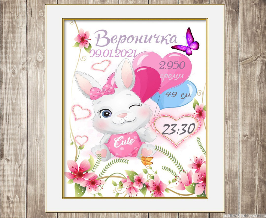 Детская метрика - постер с важными цифрами малыша, станет отличным, памятным украшением интерьера.