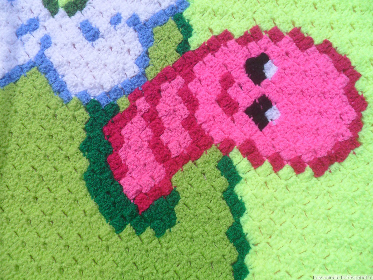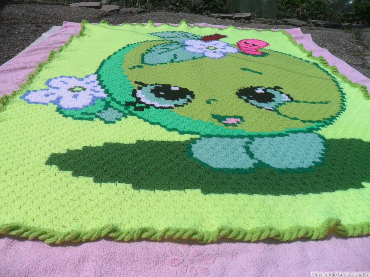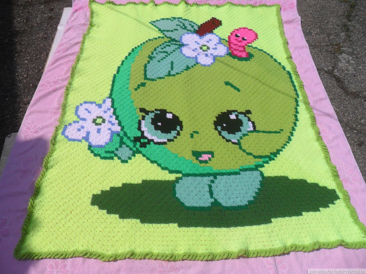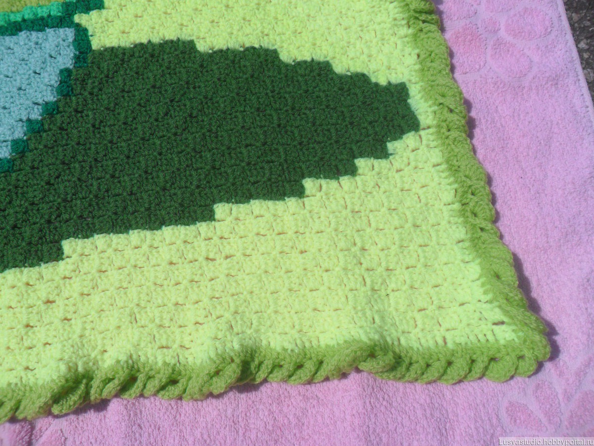 Детский плед крючком в технике С2С. Детский плед "Яблочко" связан из гипоаллергенной детской пряжи YarnArt BABY. Цельное полотно, без подклада. Мягкий и теплый.При стирке не деформируется,благодаря акрилу. Оригинальный. Края пледа украшены каймой "волны". Подойдет как для мальчика так и для девочки. Можно использовать как коврик для игр,для фотосессий.