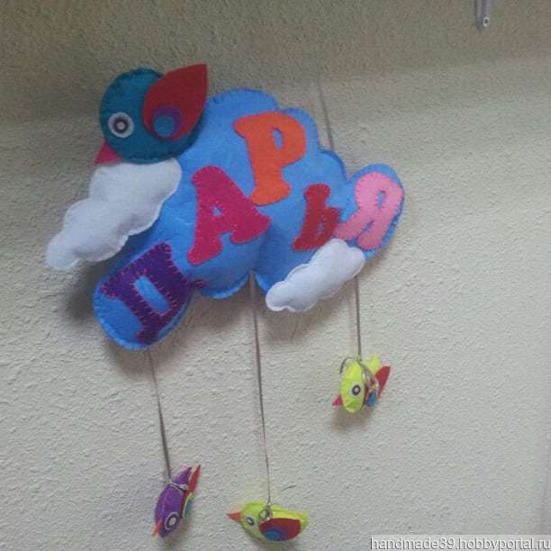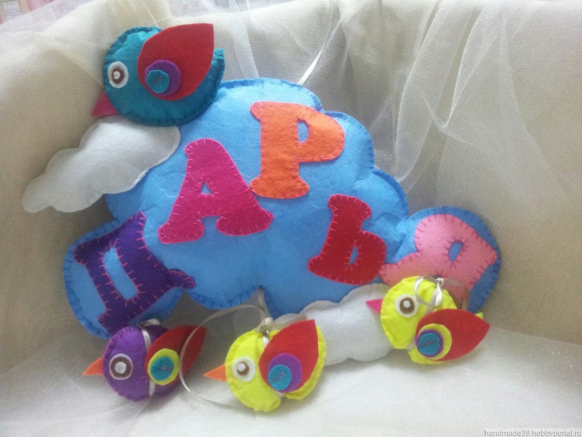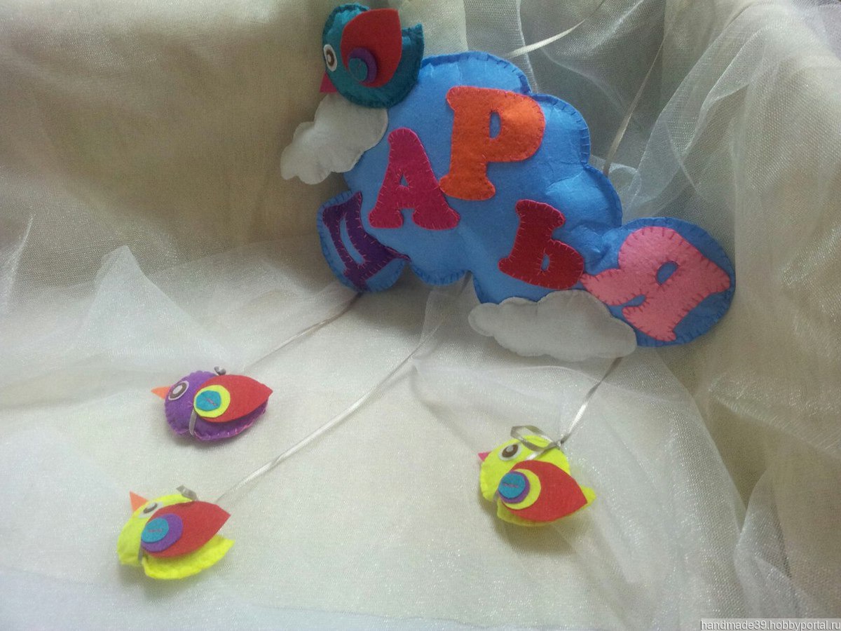 Полностью сделано вручную. Возможны разные исполнения облачка с разными игрушками не птичками, разное количество букв в имени.