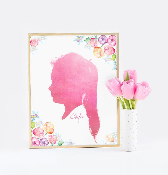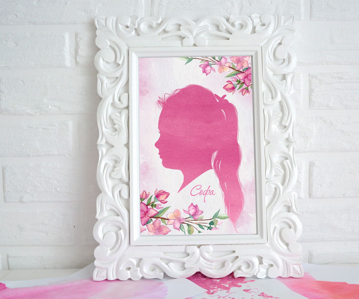 для девочки, розовый, подарок, портрет, брусничный, акварель, для интерьера, холст, цветочки, бумага, дочке, силуэт, постер, постер в детскую, детский портрет, краски, эффект акварели, на день рождения девочке