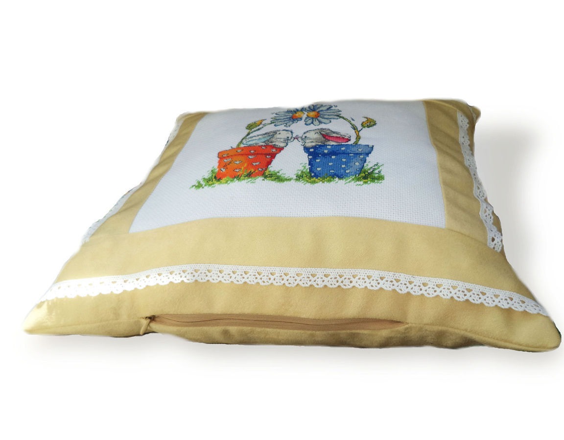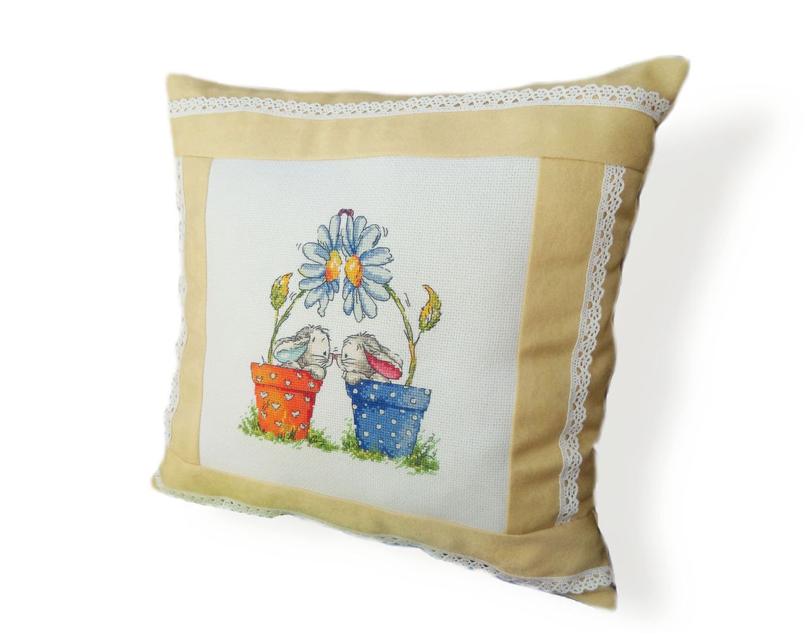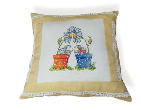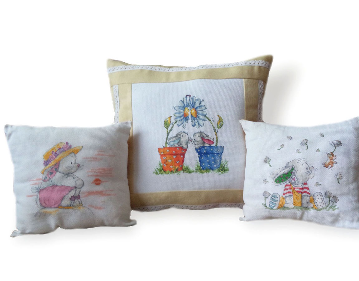 В комплект можно вышит подушки с другими зайчиками, см фото 5 или вышить картину с похожей тематикой.