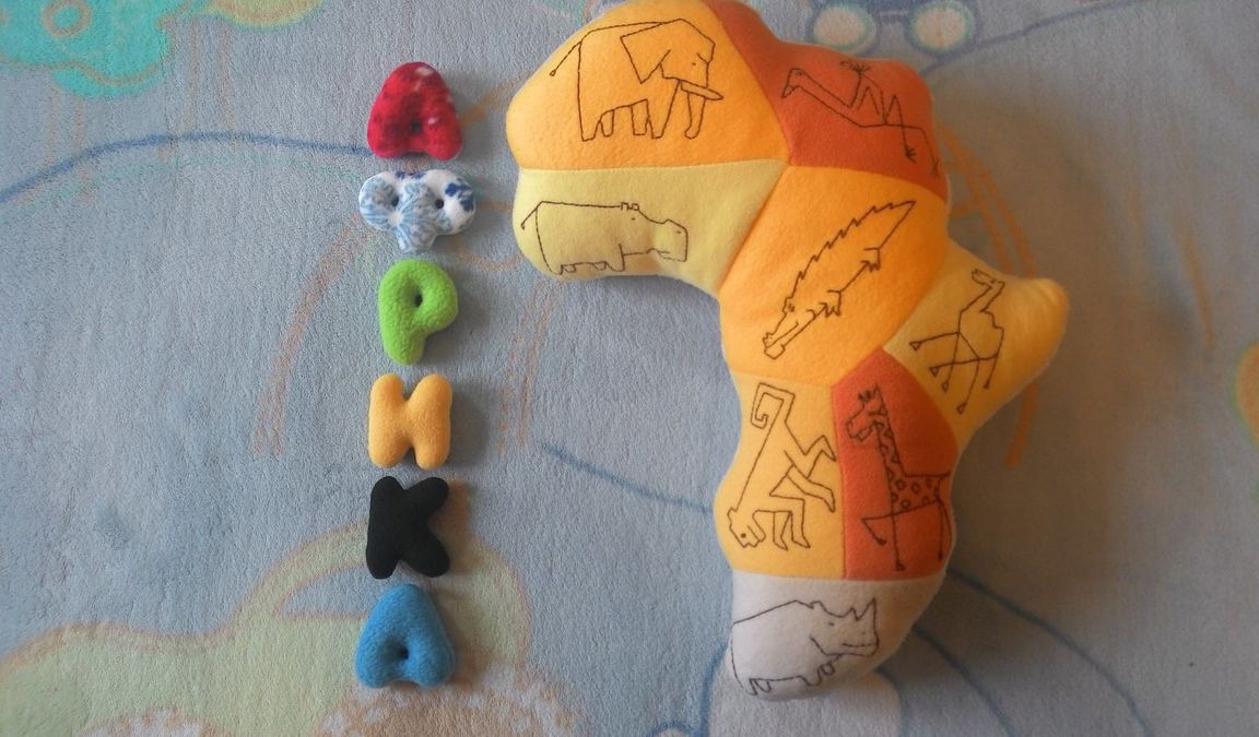 Сшита Африка из флиса, наполнена синтепухом, звери вышиты нитками ирис.