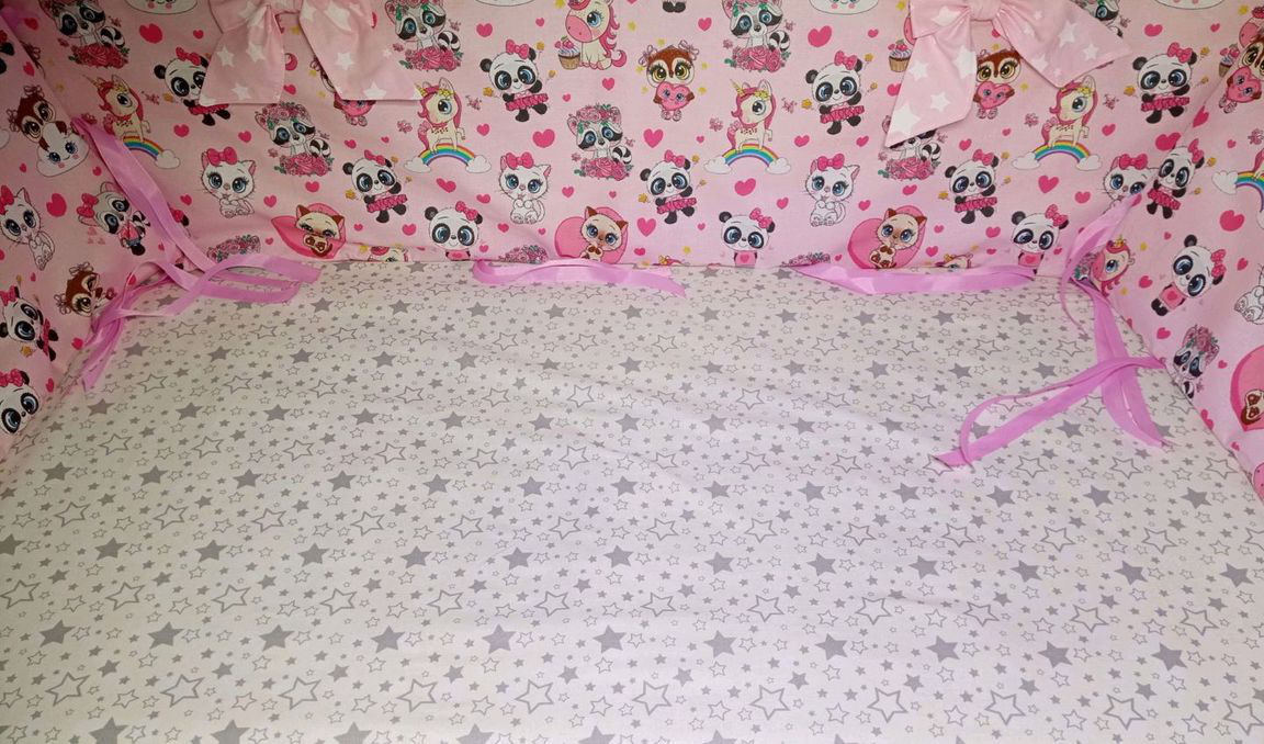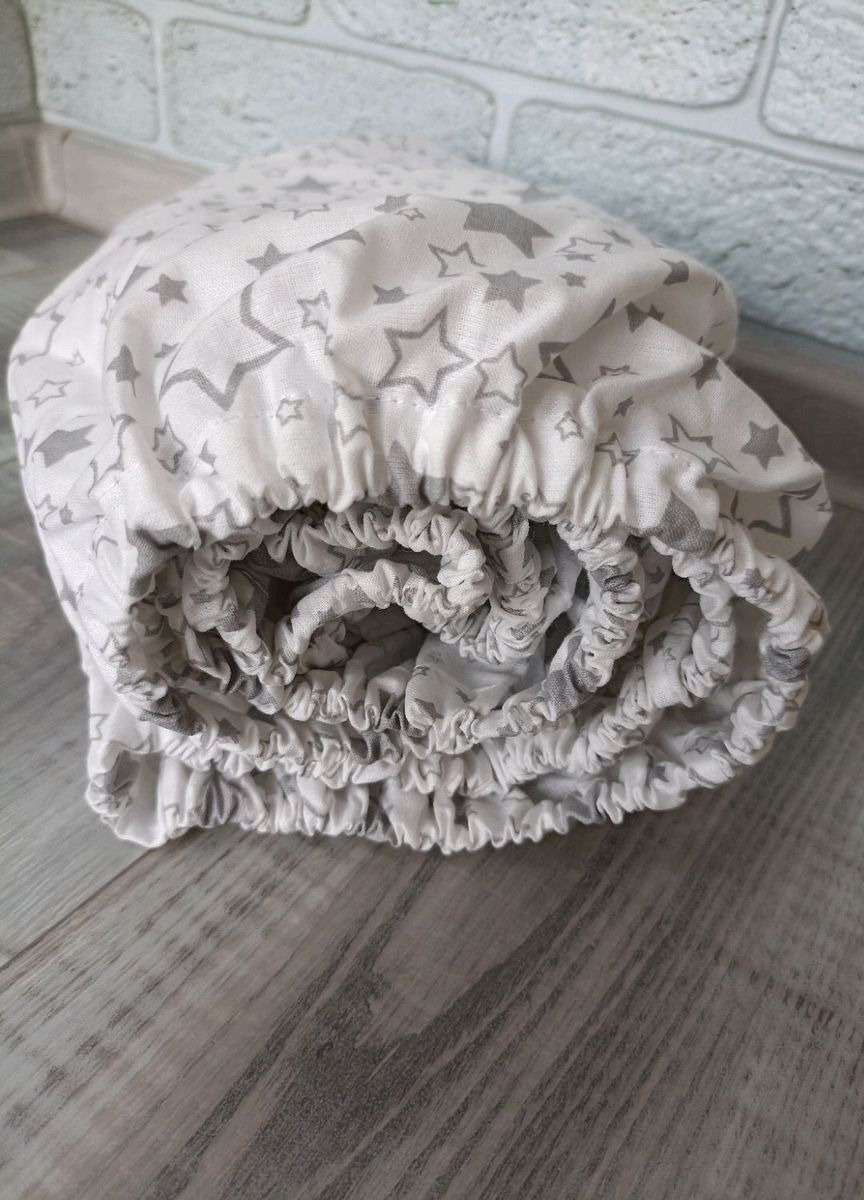 Простынь на резинке в детскую кроватку сшита из поплина ( 100% хлопок). Подходит для кроватки 60х120 и высотой матраса до 16см. Надежная фиксация на матрасе, резинка по всему периметру простыни.