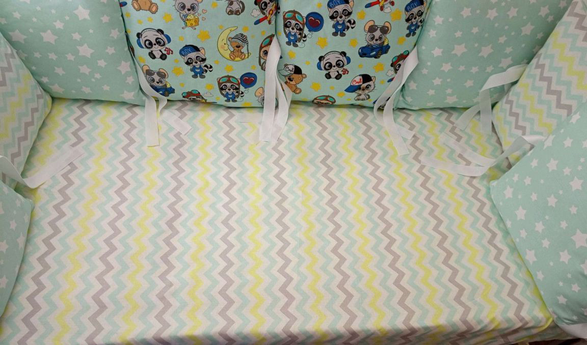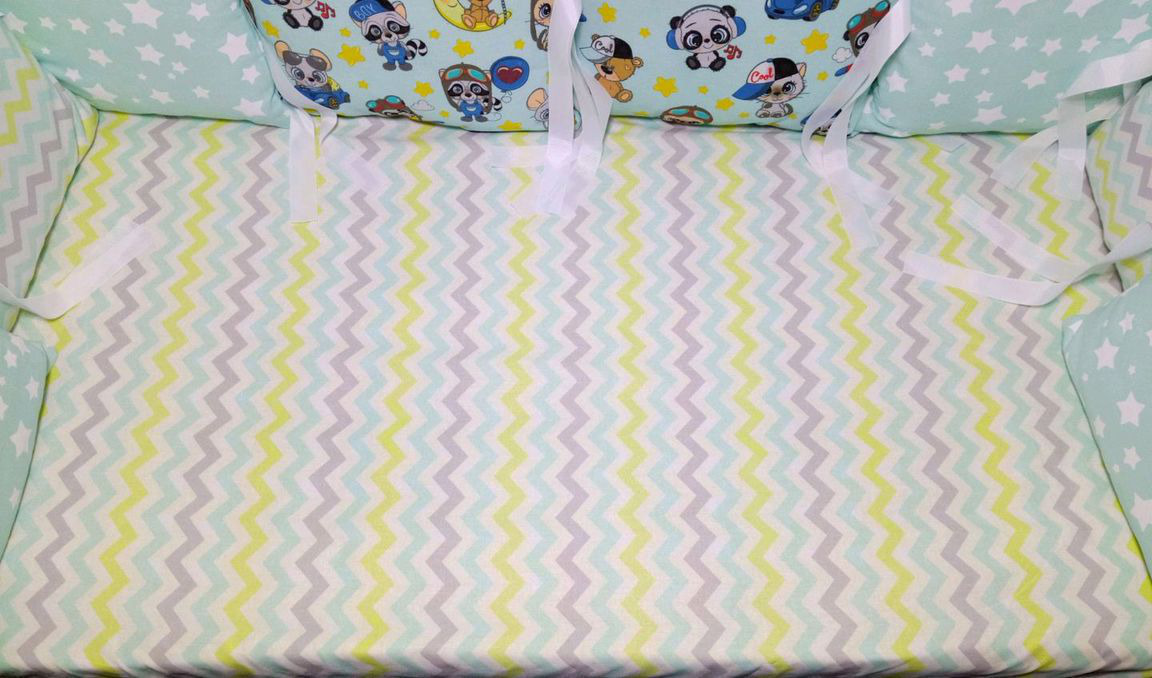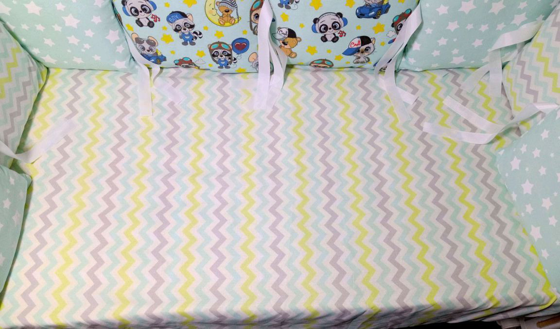 Простынь на резинке в детскую кроватку сшита из поплина ( 100% хлопок). Подходит для кроватки 60х120 и высотой матраса до 16см. Надежная фиксация на матрасе, резинка по всему периметру простыни.