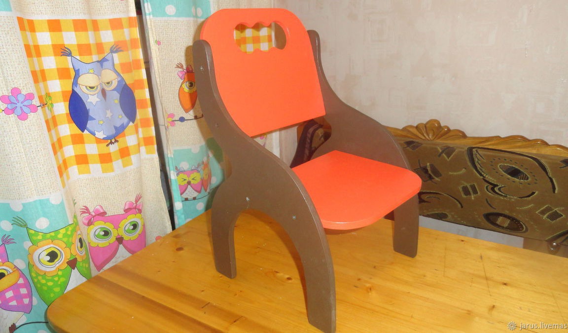 Простой, устойчивый, надёжный, крепкий детский стульчик. Яркий, своеобразный, привлекающий внимание как детей, так и взрослых. Стол в комплект - в процессе создания (обязательно дополню фотографиями). Цвет на Ваш выбор.