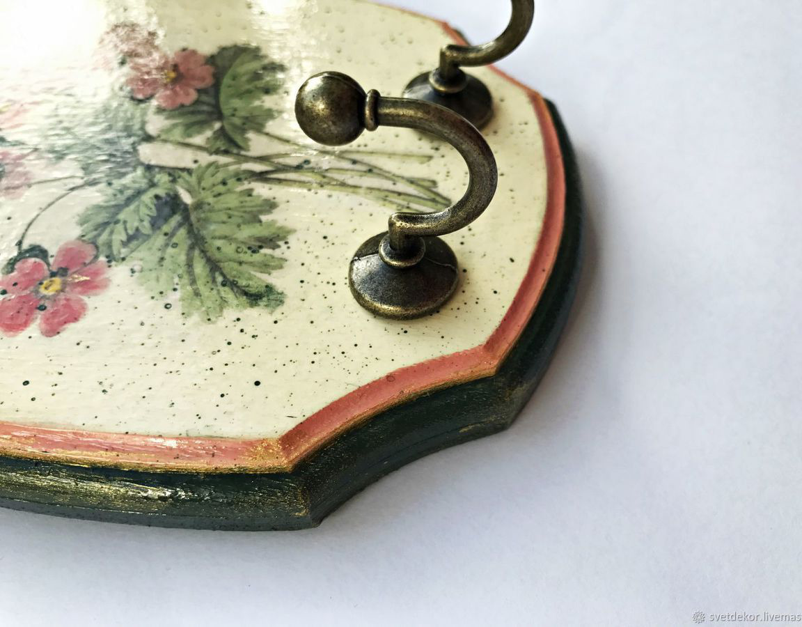 акриловые краски, металлическая фурнитура, деревянная основа, акриловый лак, Декупажная карта, фурнитура под бронзу