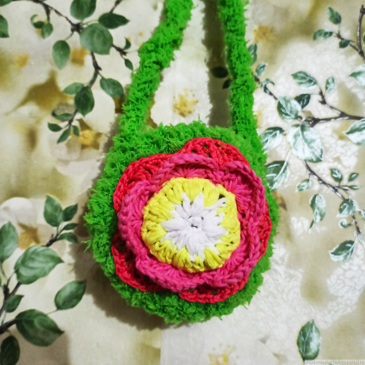 Сумочка ручной работы, связана крючком из хлопково-эластановой пряжи и травки очень мягкой и нежной.