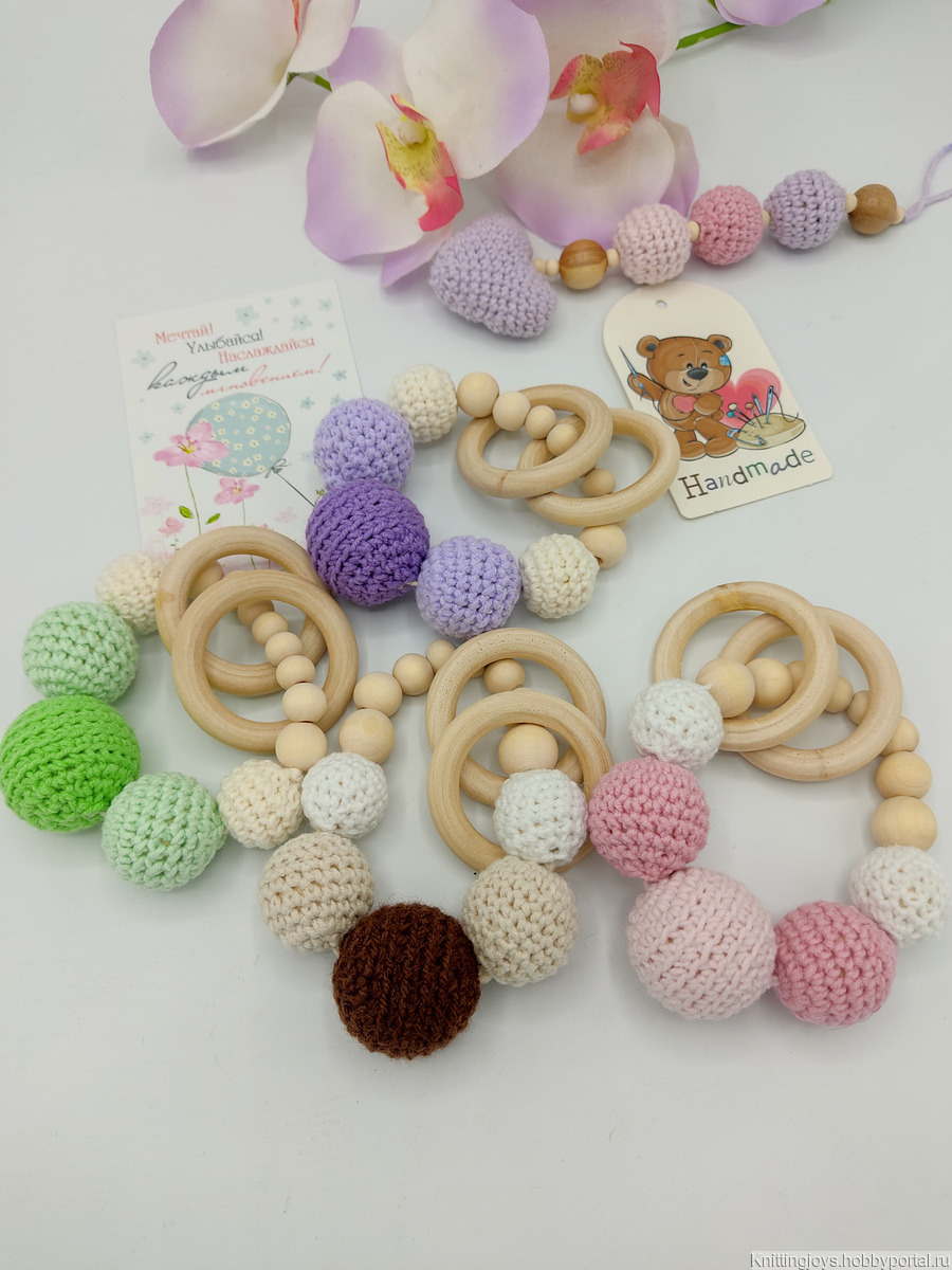 деревянные бусины, хлопок с акрилом