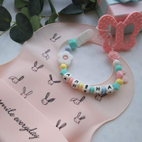 Держатель для пустышки - удобная и нужная вещь для мамы и одновременно яркий аксессуар для Вашего малыша. Предохраняет соску-пустышку от падений и загрязнений, не позволяет ей теряться, способствует развитию мелкой моторики! Держатель надежно крепится к одежде ребенка при помощи клипсы, которую ребенок не сможет сам открыть. Благодаря крепкой атласной нити, Вы можете быть уверены, что малыш не порвет изделие. Именной держатель для пустышки станет отличным подарком на любой праздник!