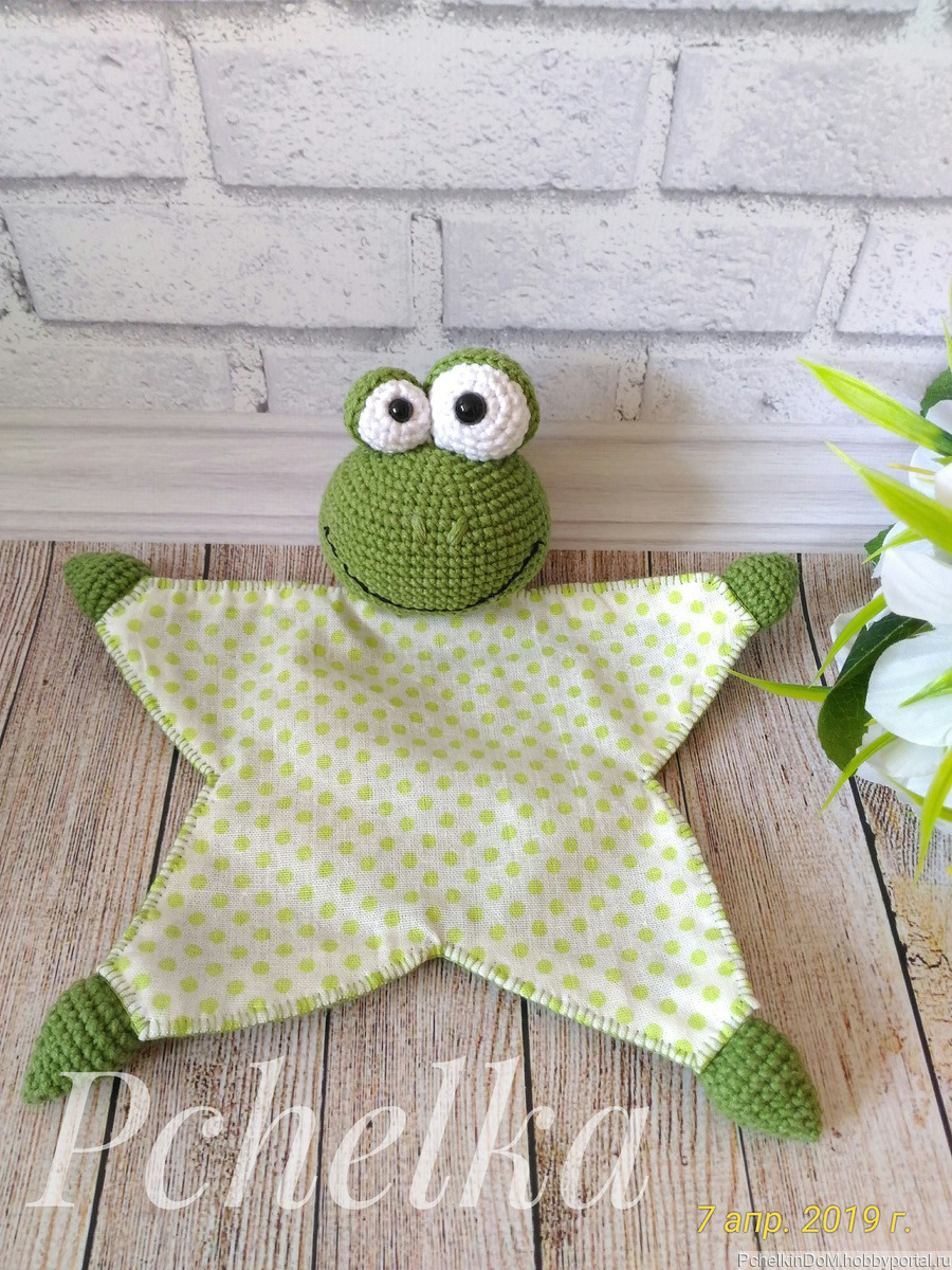 комфортер, лягушонок, лягушка вязаная, Комфортер для малыша, комфортер вязаный, лягушонок вязаный