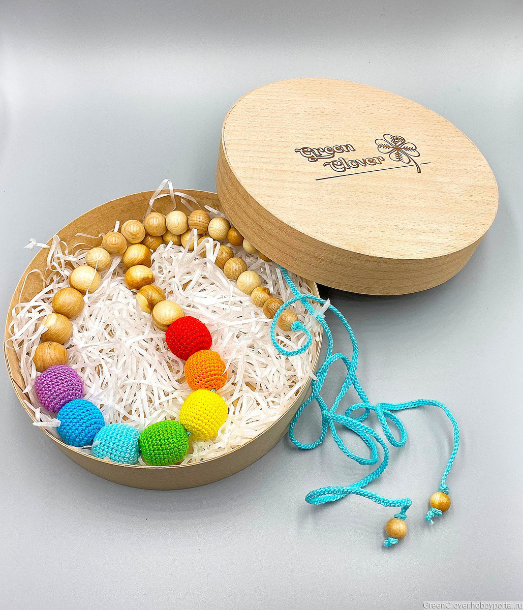 При изготовлении слингобус использованы только натуральные материалы: открытые бусины – можжевельник, обвязанные бусины – карпатский бук, 100% хлопок.