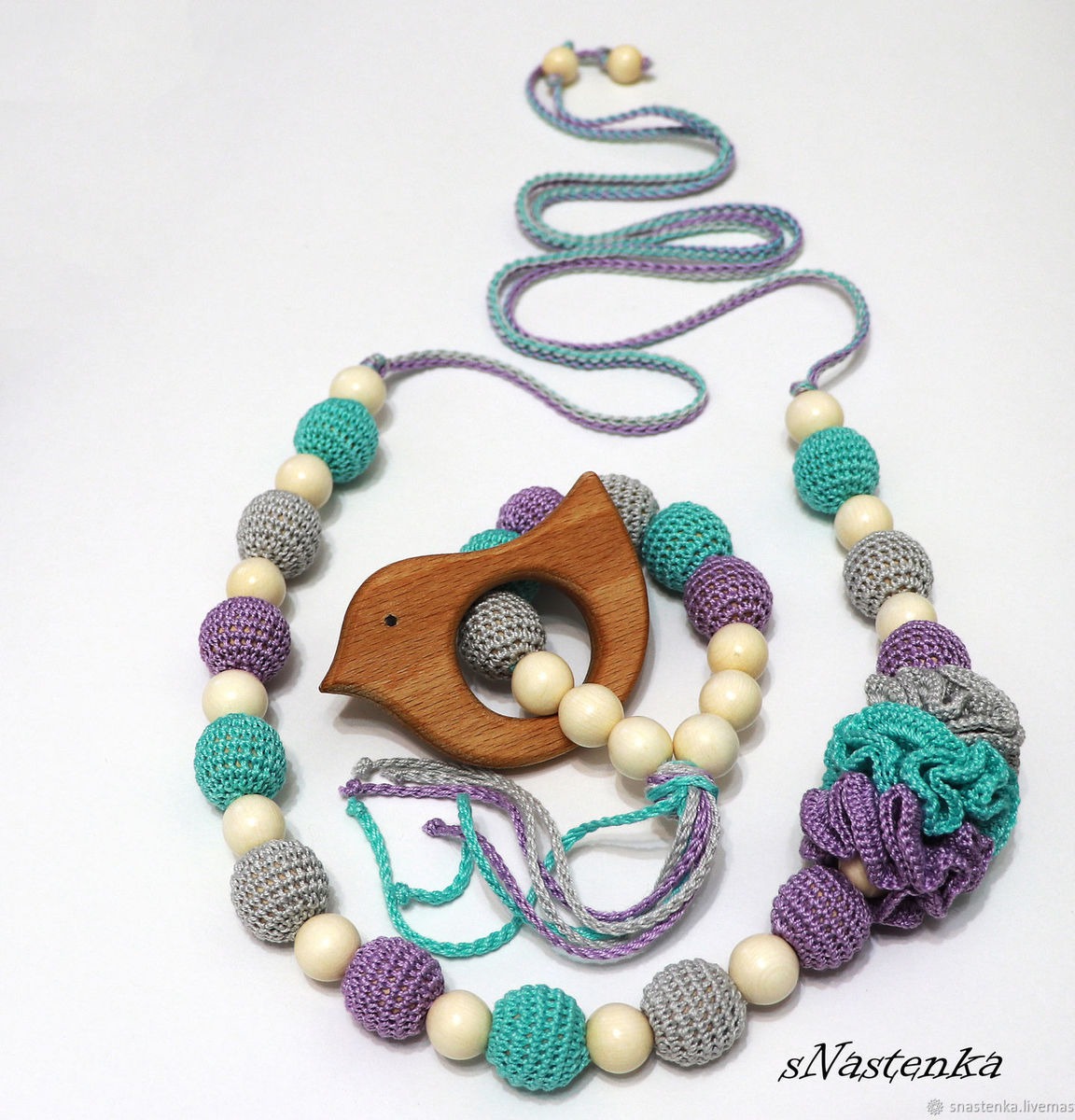 Слингонабор "Сказка" изготовлен из безопасных материалов: мерсеризованного хлопка и деревянных экобусин (без краски и лака) из граба беленого и бука.