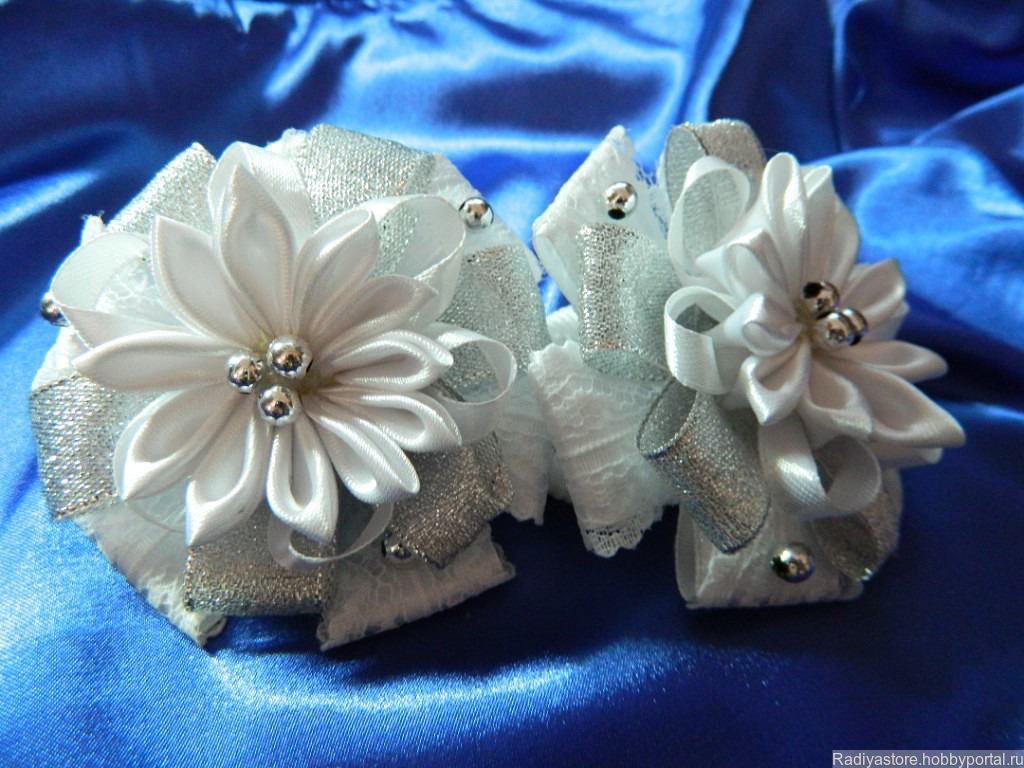 Эффектные бантики ручной работы не останутся незамеченными на праздничной линейке или утреннике Вашей дочурки. Цена указана за пару. Крепление обсуждается дополнительно, возможно крепление на резиночки, заколки, ободок.