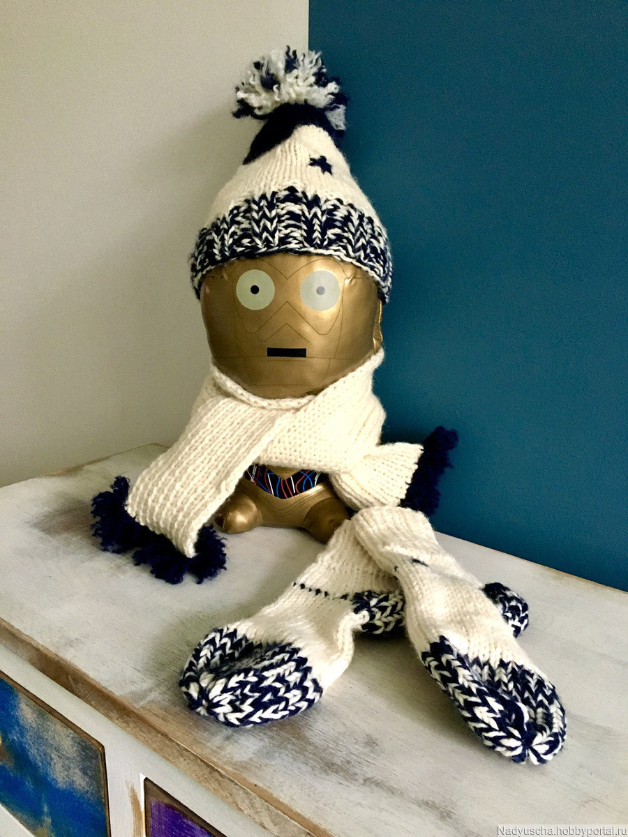 Комплект детской зимний полушерстяной (не колючий!!!) бело синий. Ребёнка будет видно сразу в тёмное время года.