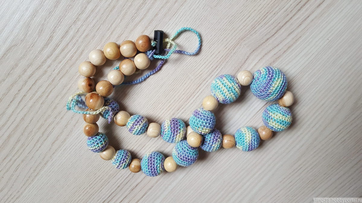 Слингобусы ручной работы. Бусинки можжевеловые, ниточки хлопок