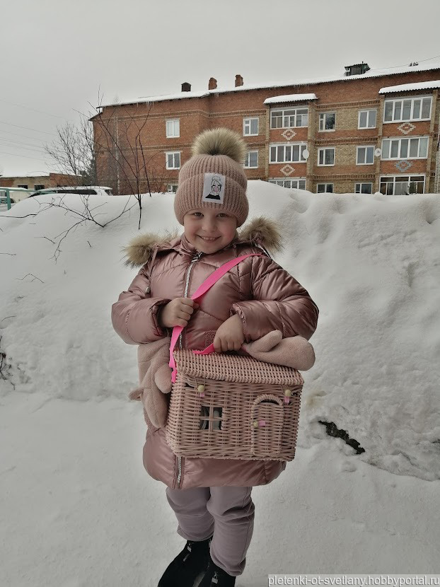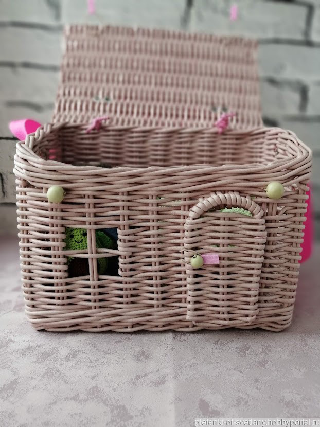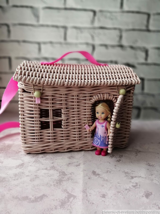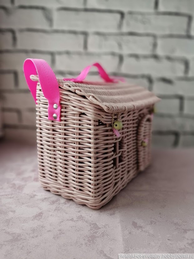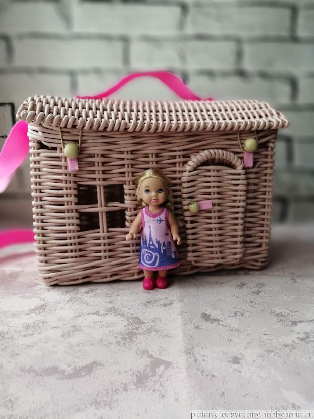 Плетеная сумка домик позволит вашей малышке не расставаться с любимыми игрушками. Возьмите ее с собой на прогулку, на природу, в гости или в дорогу.