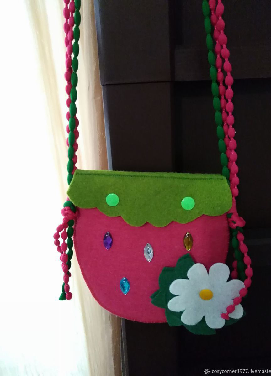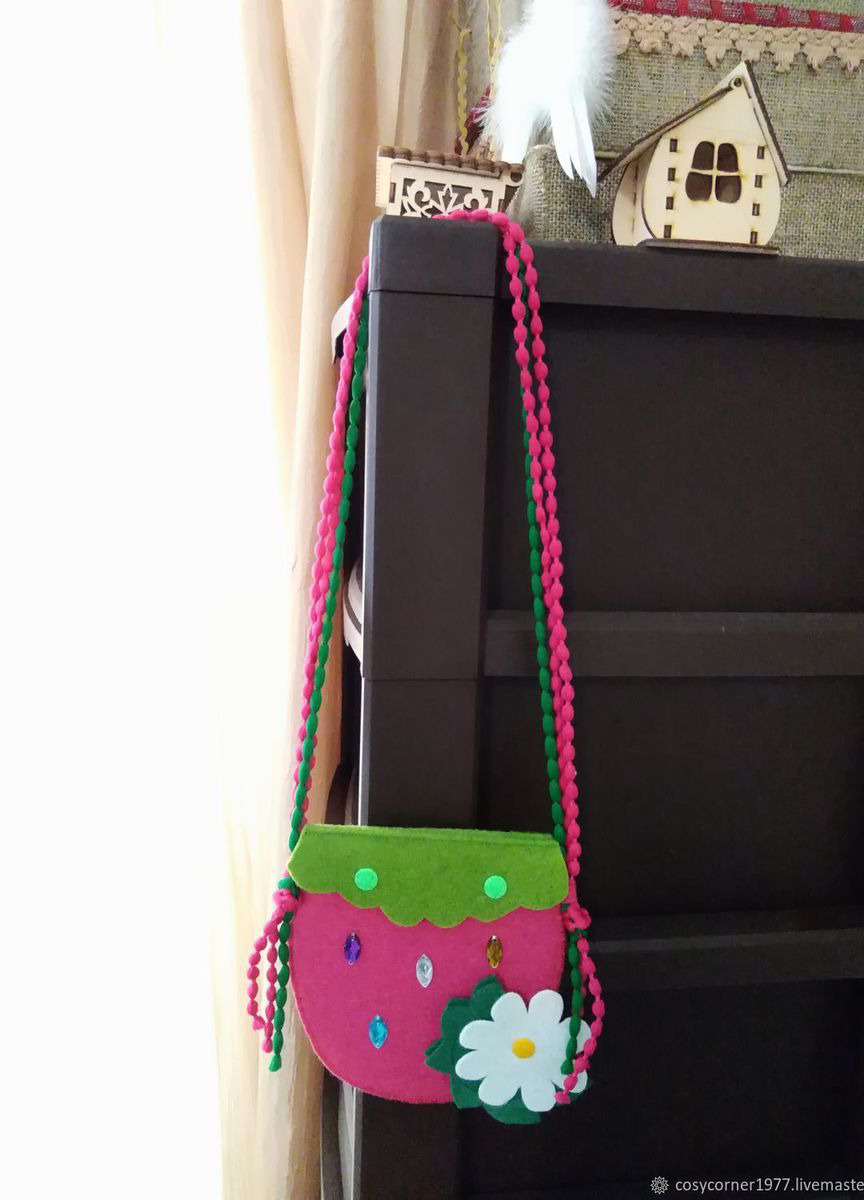 новогодний подарок, сумочка для девочки, фетр, сумка для девочки, подарок, подарок на любой случай, комбинированный, земляника, уют, Сумка клубничка, оригинальные подарки, цветы в украшении, детская сумочка, кошелек для девочки, сумка для телефона, сумочка земляничка