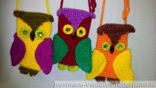Изящные и стильные, красочные и необычные по оформлению, эти замечательные и эксклюзивные сумочки могут стать верными спутниками для ваших детей и прекрасным подарком от Деда Мороза!!!!!! Все сумочки выполнены крючком из х/б ниток "Лотос" (чехлы для телефона "Совушка" - из п/ш пряжи, остались 2 шт).