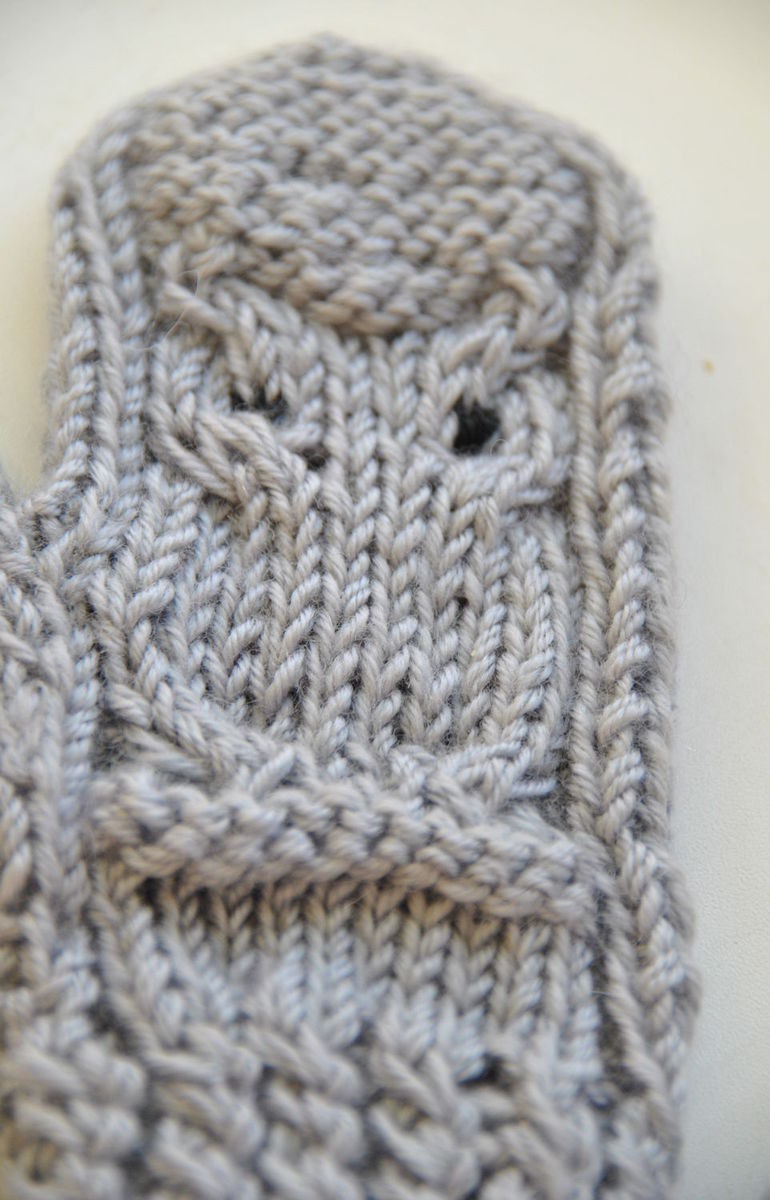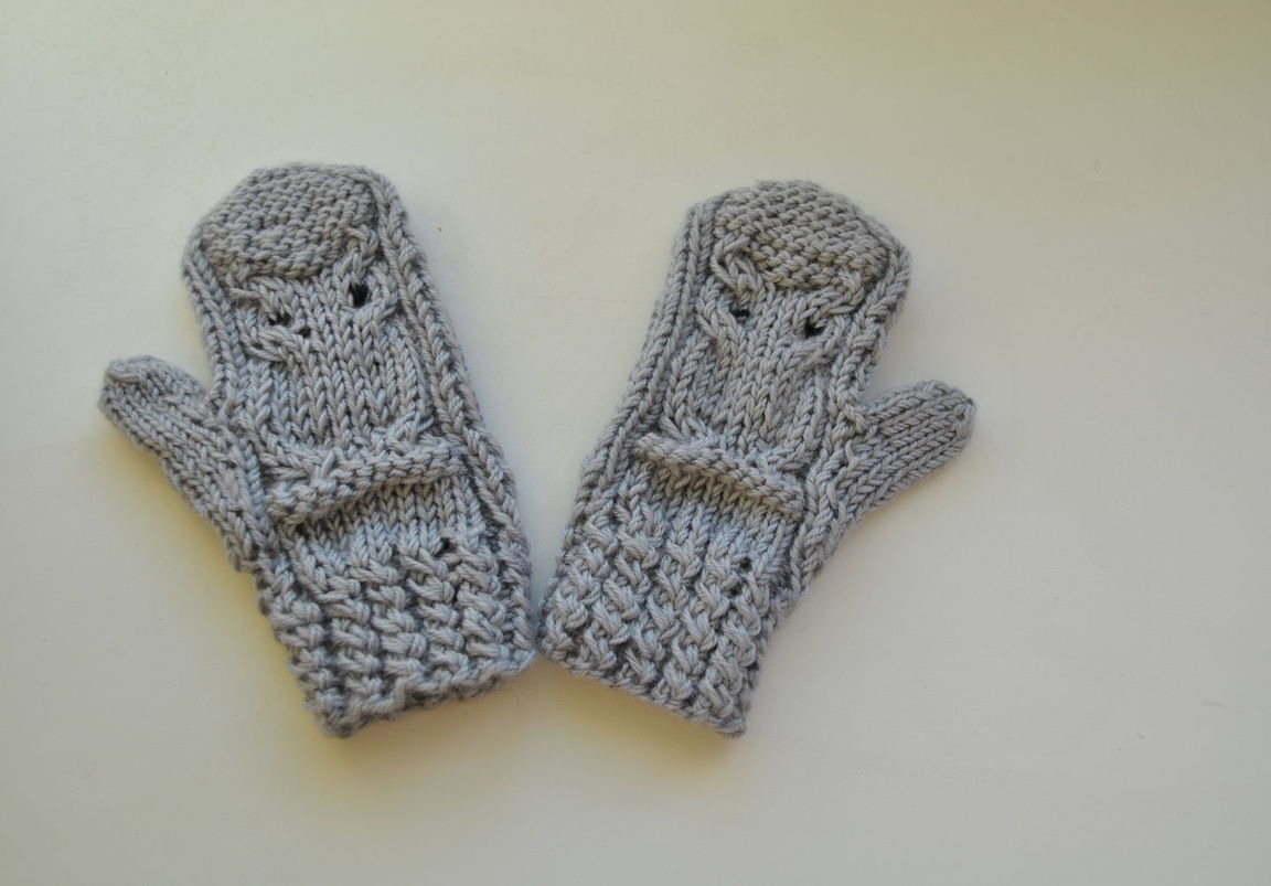Забавные вязаные детские варежки "Совушки".