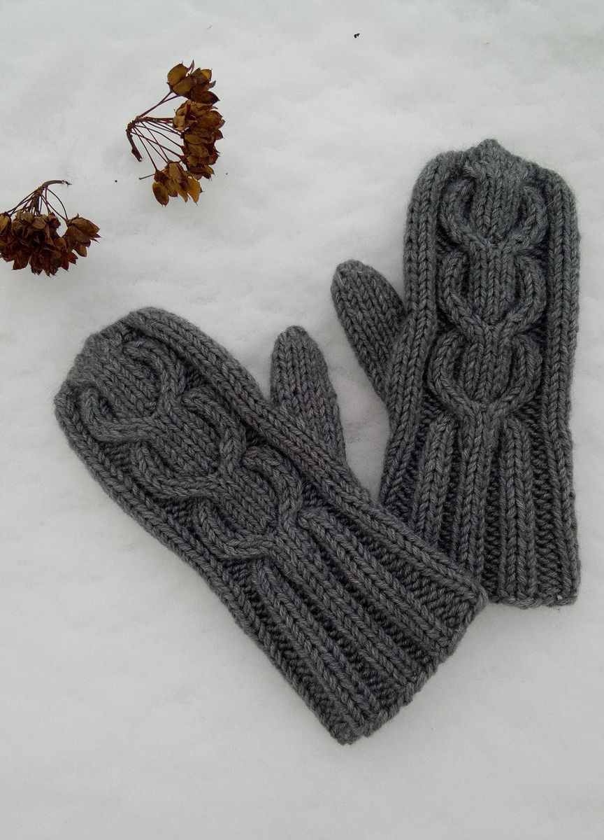 вязаные спицами варежки для мальчика изготовлены из шерстяной пряжи.