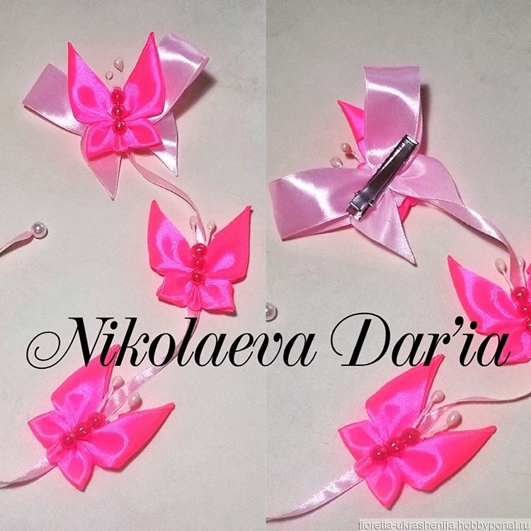 атласные ленты, бабочки, лента в косу, канзаши ручная работа