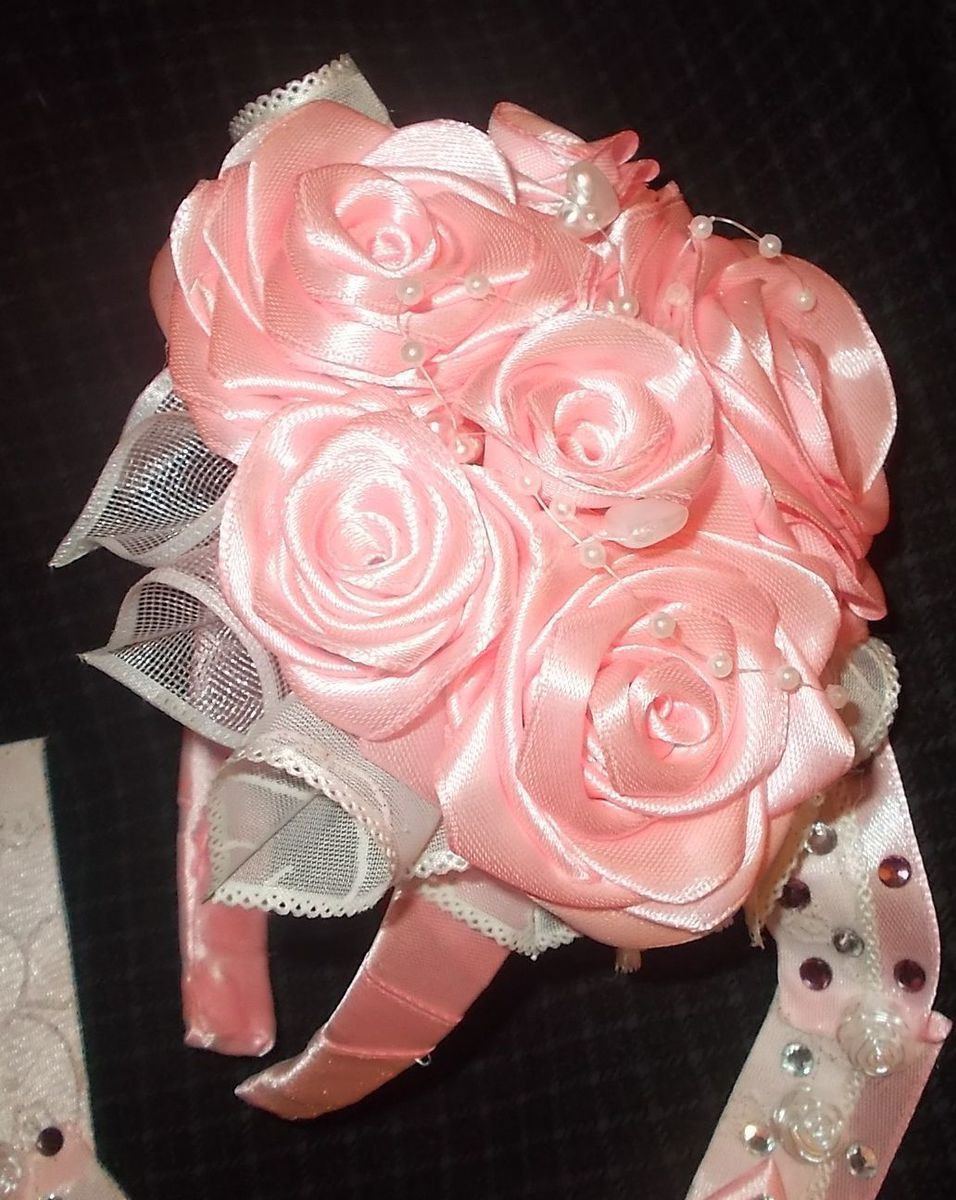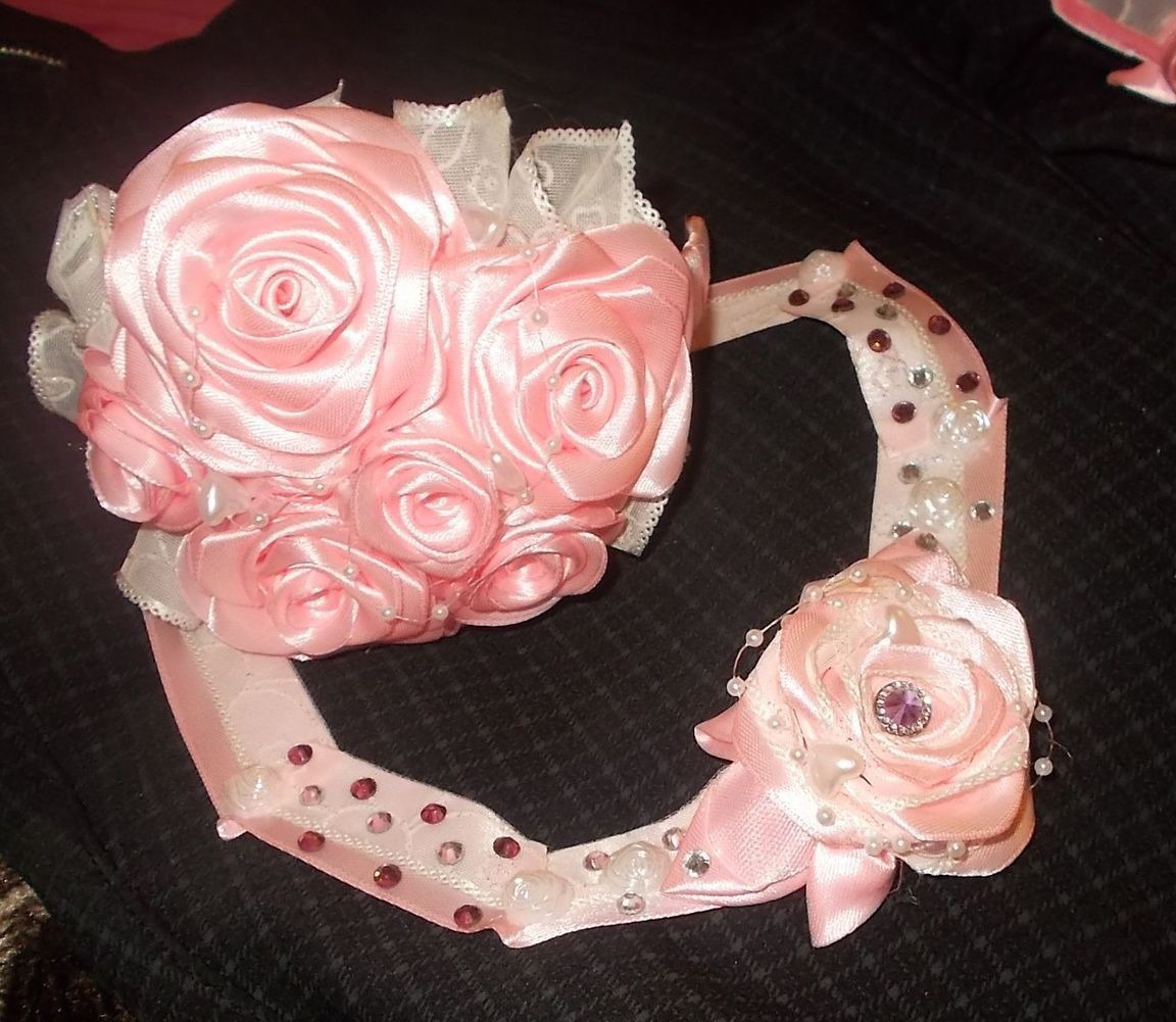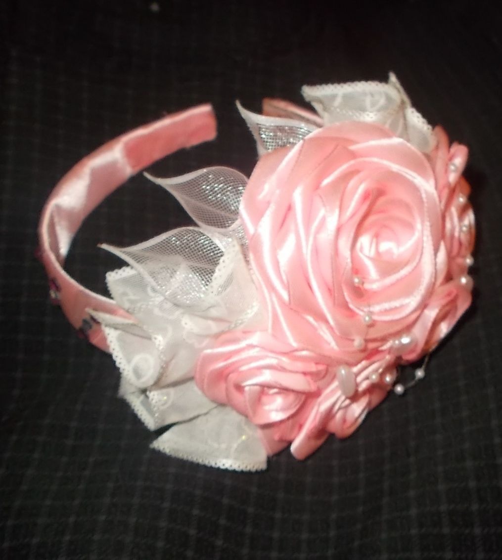ободок, оригинальный подарок, комбинированный, красивый, украшение канзаши, набор ручной работы, нежнейший розовый, перчаточки, колье канзаши