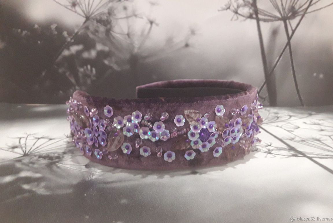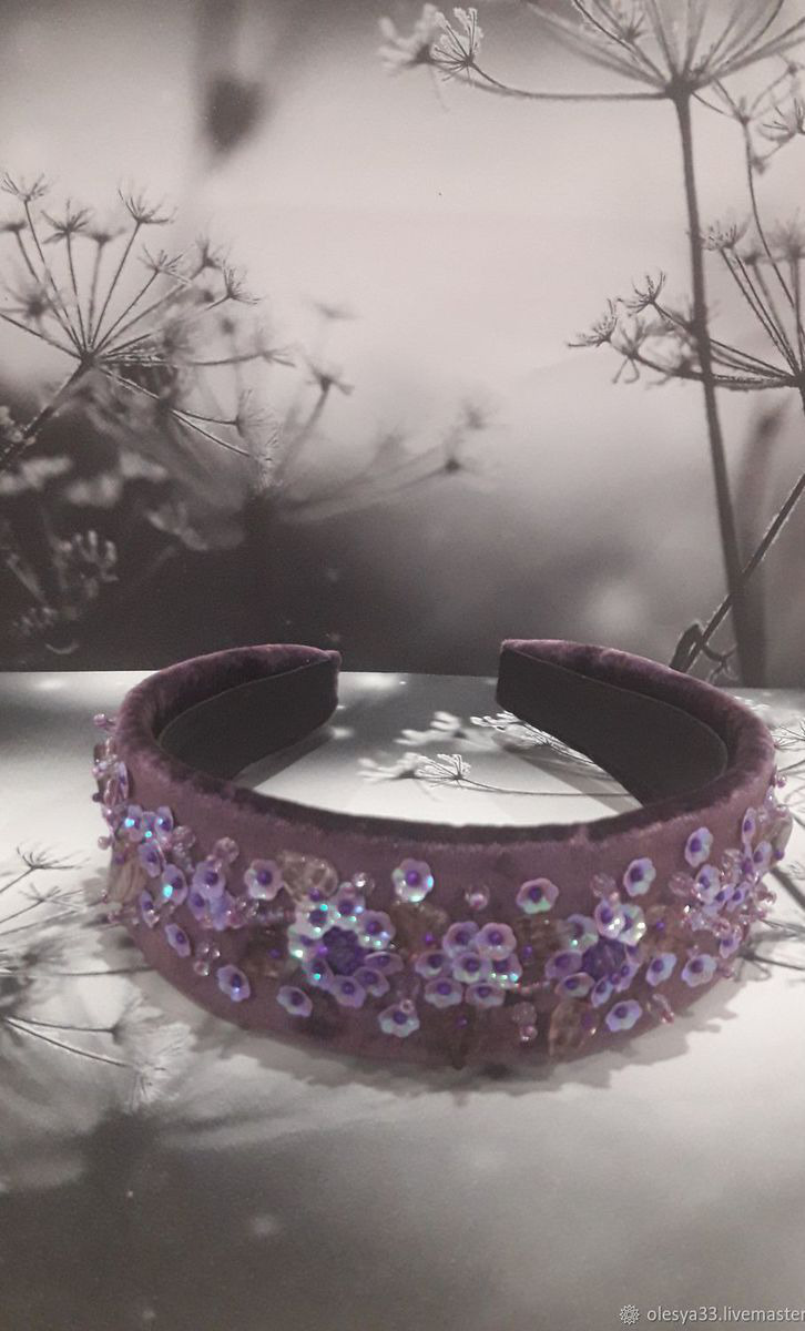 бисер, фиолетовый, ободок для волос, ободок для девушки, пайетки, ободки для волос, ободки, ободки ручной работы