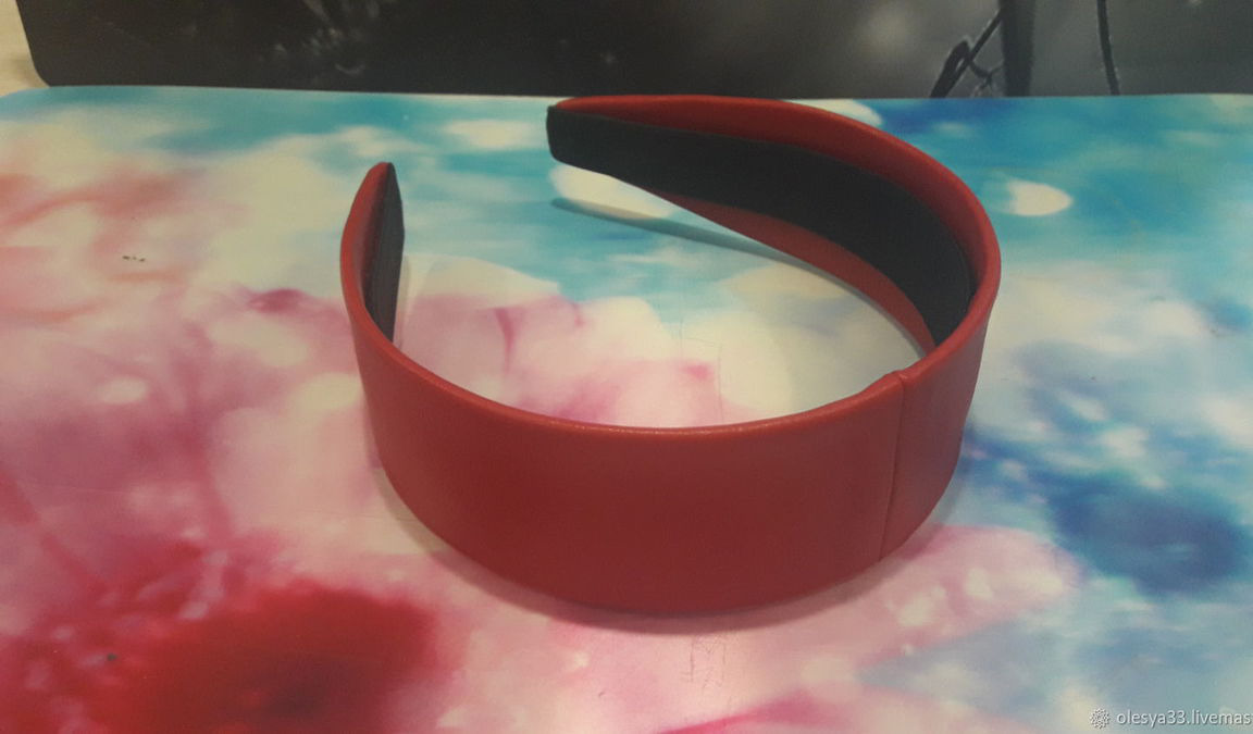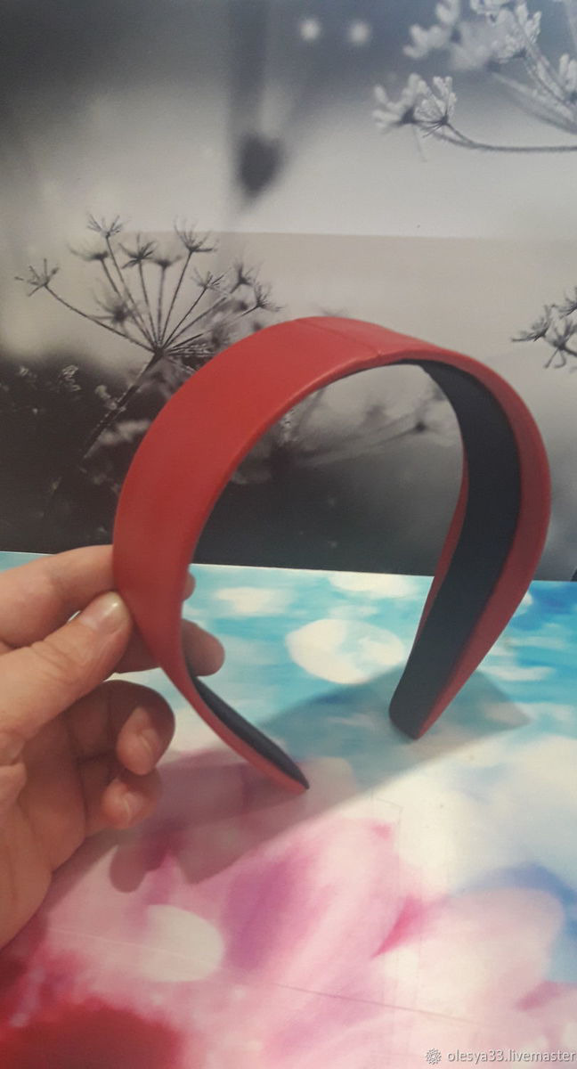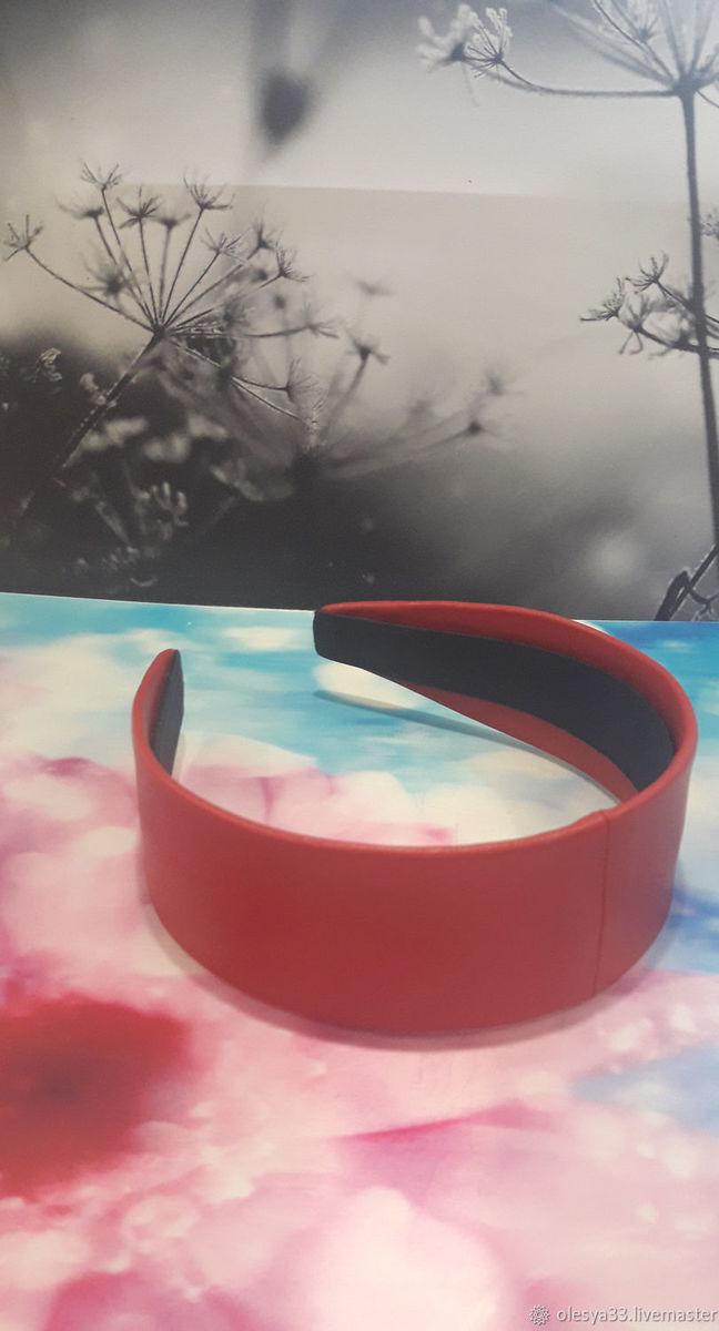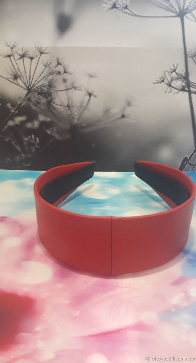 ярко-красный, ободок, ободок для волос, ободок для девушки, ободок ручной работы, ободки, кожаный ободок