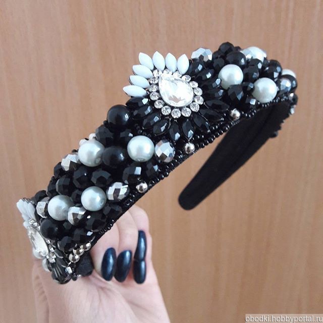 Универсальный черно-белый ободок расшитый бусинами. Отличный универсальный вариант для разных событий
