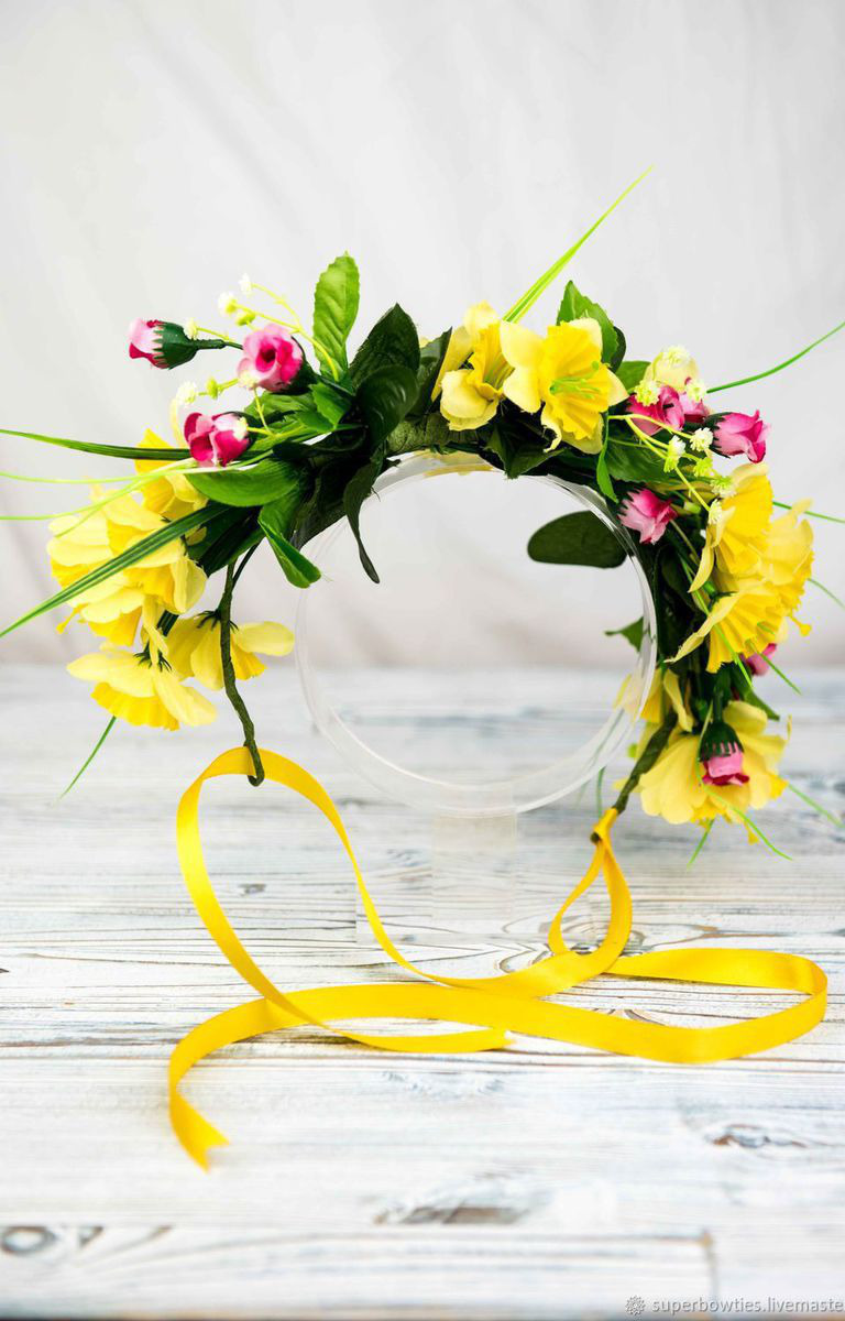 желтый, розовый, венок, розы, венок с цветами, венок для фотосессии, венок с розами, нарциссы, венок из цветов, венок на голову, веночек на голову, веночек из цветов, розочки, веночек, веночек-ободок, нарцисс, веночек с цветами, венок для невесты