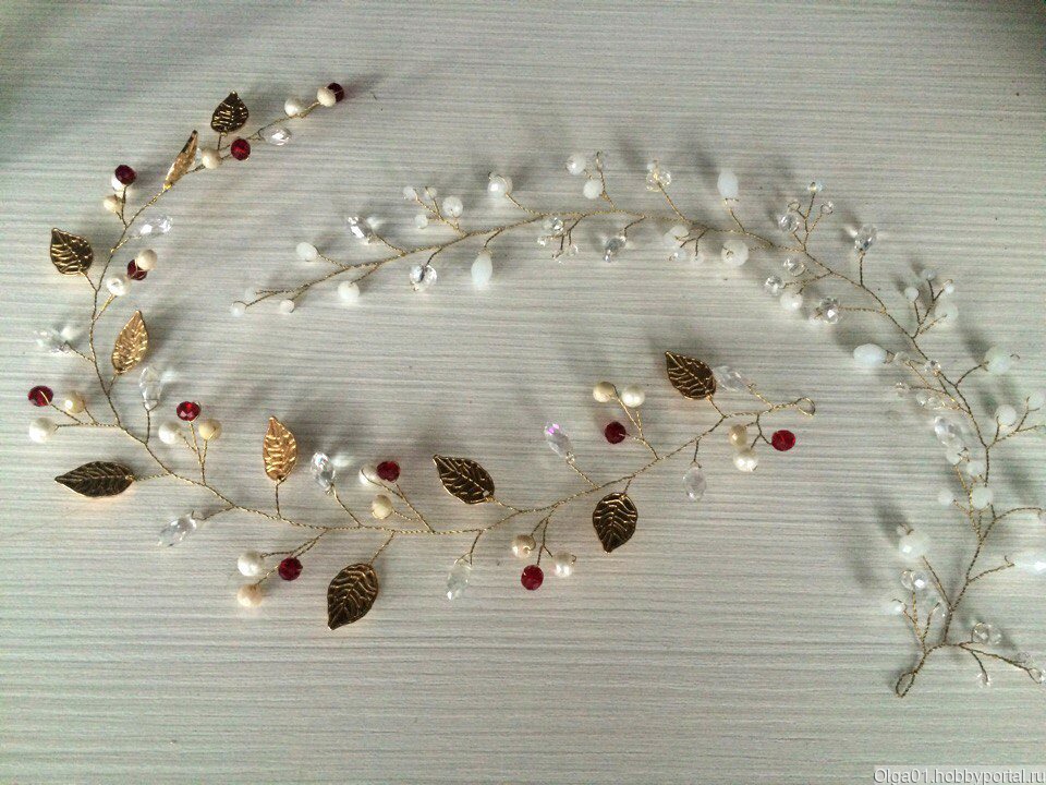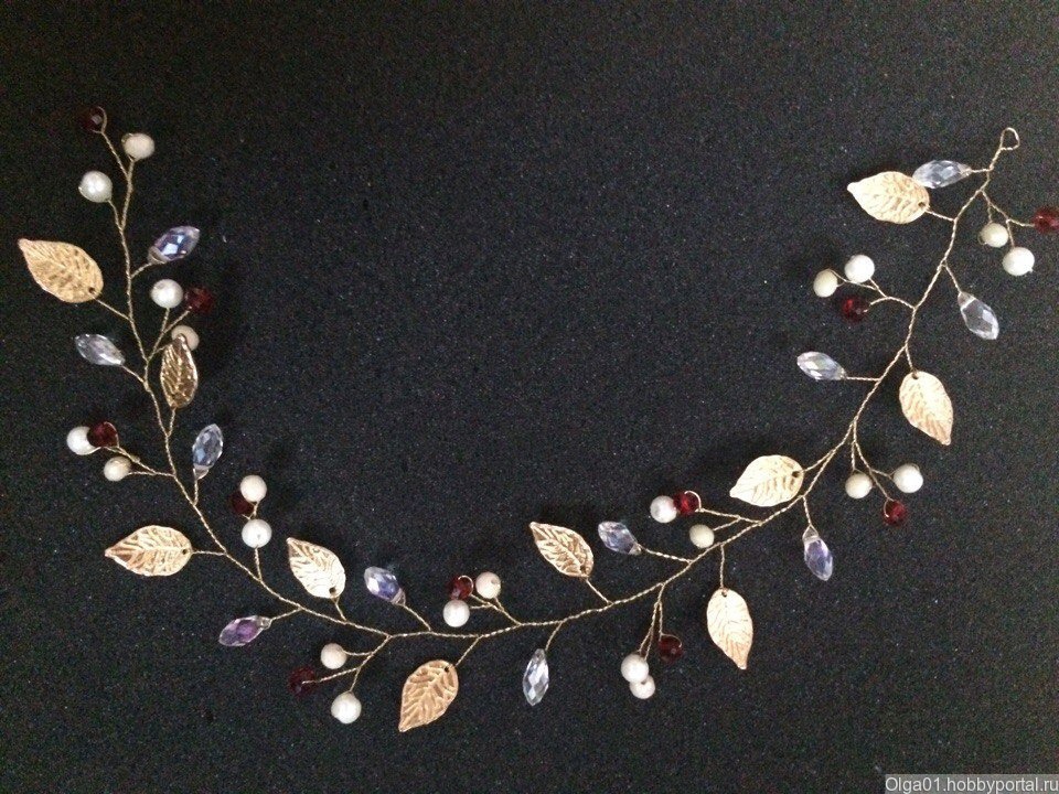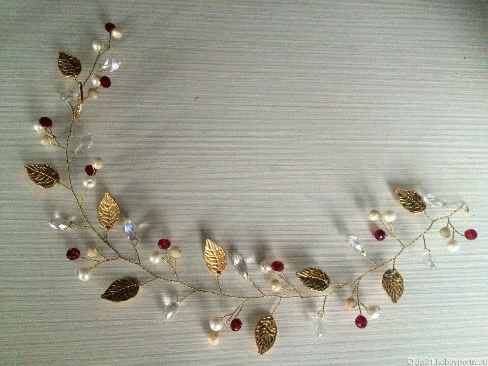 Веточка для волос создана в цвете марсала с золотыми листиками! не широкая) Очень изящная и нежная! Шикарно украсит любую причёску !!!Можно изготовить в любом другом цвете под ваше платье ) эта веточка прекрасно подойдёт для вечерней причёски или на выпускной вечер! Для Москвы возможна бесплатная доставка до метро)