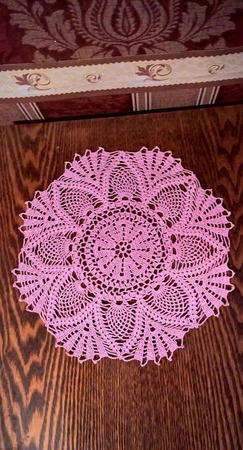Ажурная салфеточка выполнена из 100% мерсеризованного хлопка. В диаметре 21 см. Нить очень тоненька, салфеточка смотрится изящно.