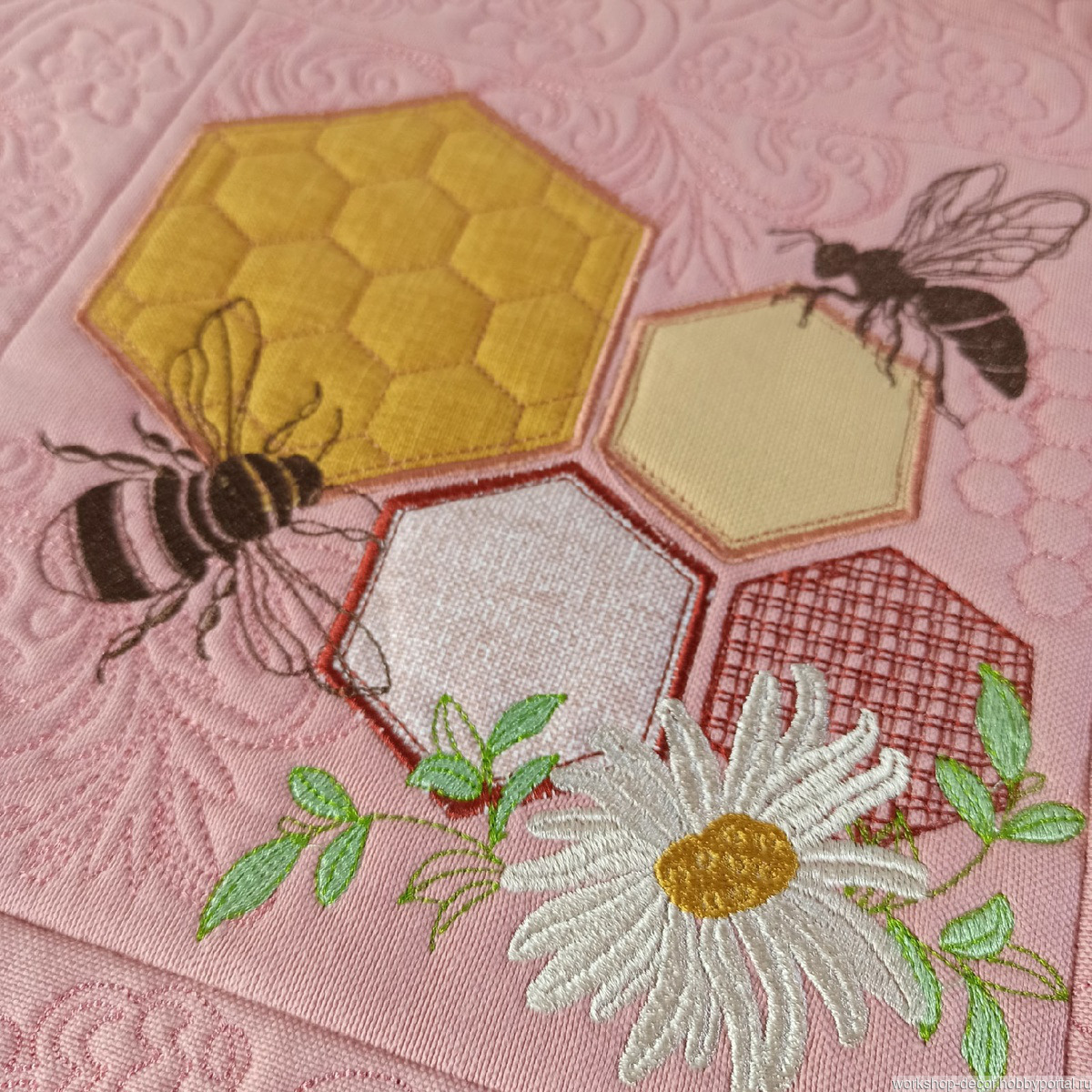 Стеганая салфетка под чайник выполнена в квилтовой технике с вышивкой, стежкой и аппликацией.