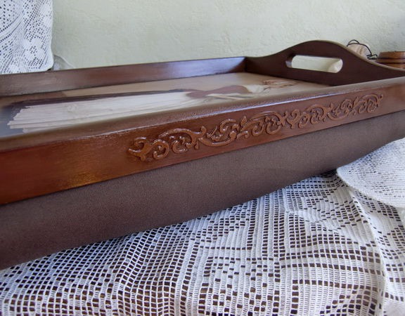 Большой деревянный поднос на подушке для Вашего дома. Очень удобно разместится с ним на диване, попить чайку и перекусить. Оригинальный, красивый и полезный подарок!