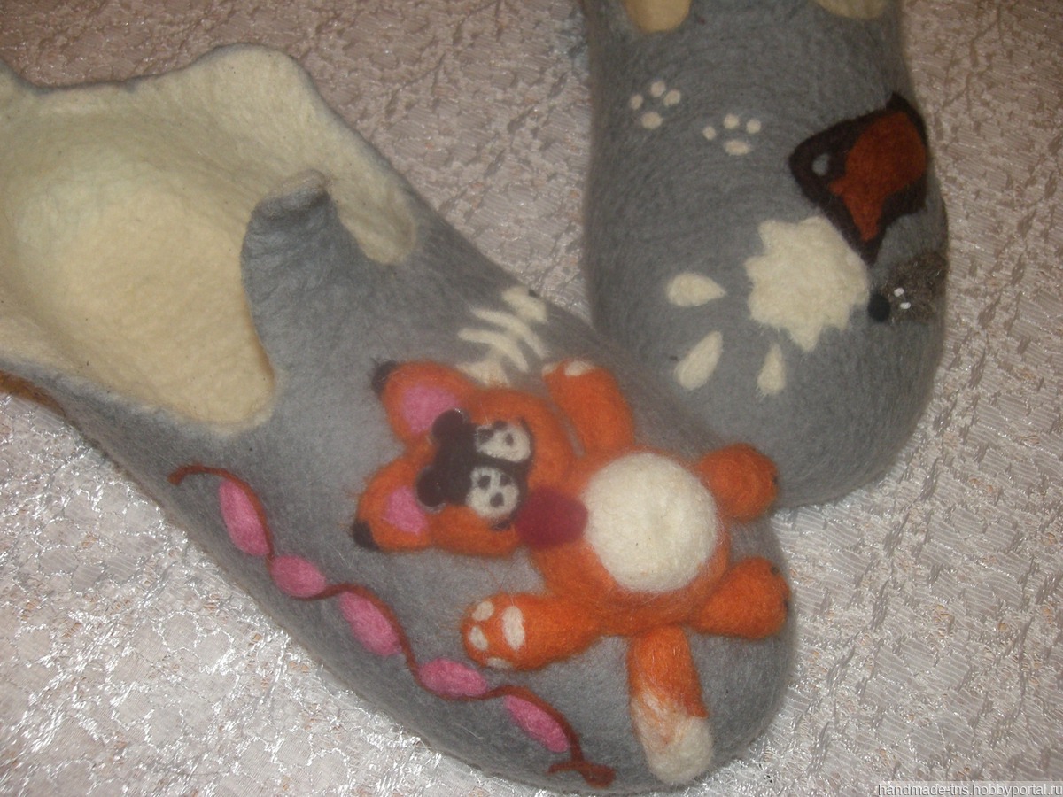Женские тапочки-бабуши из натурального войлока с оригинальным объёмным рисунком в технике сухого валяния "Кот обжора". Подшиты натуральной кожей. Сделаны с любовью. Обладают необычайно тёплой энергетикой, передающей целительные силы нежной шерсти высокого качества и тепла рук автора. Возможен другой дизайн, форма - варианты предложу в переписке. Так же возможен мужской вариант.