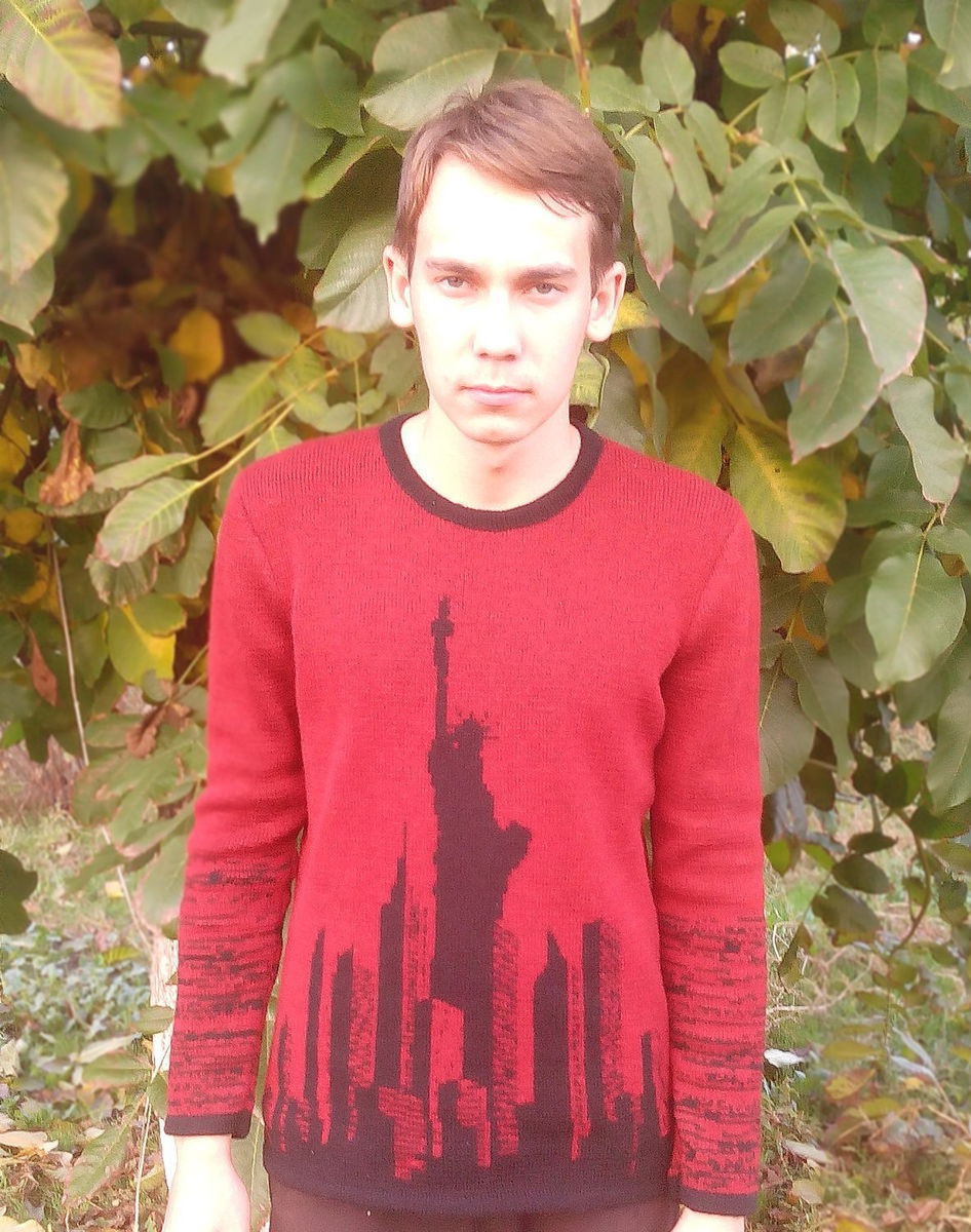 Молодежный , яркий свитер для молодого человека, мягкий и уютный , тонкий но теплый . Придаст вашему образу яркий молодежный шарм.Рисунок можно выбрать любого другого города по вашему желанию. цена плюс минус от материала