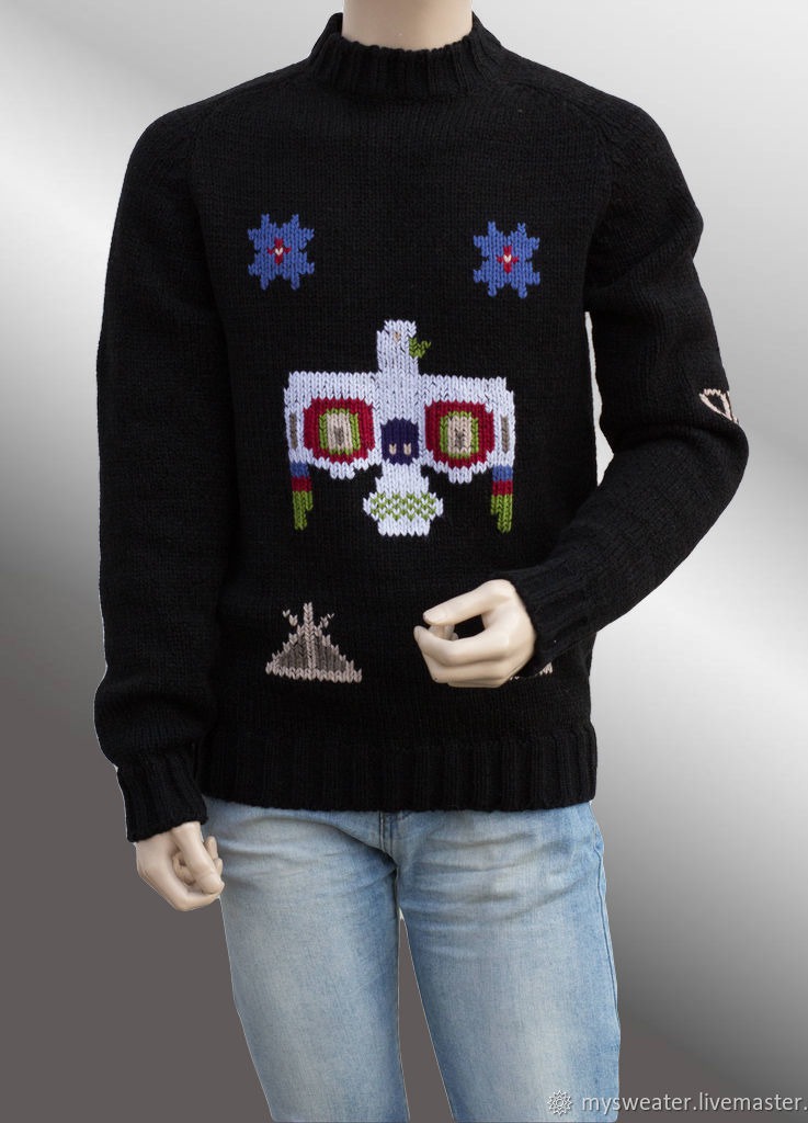 Свитер крупной вязки для любителя экзотики связан из итальянского твида . Ручная этническая вышивка выполнена по мотивам рисунков индейцев штата Огайо. Единственный экземпляр!.В этом свитере Вы точно не останетесь незамеченным..