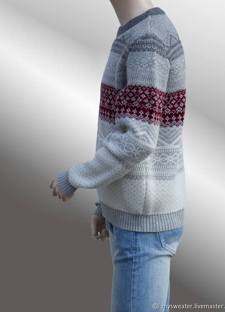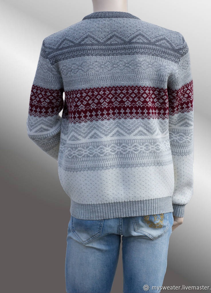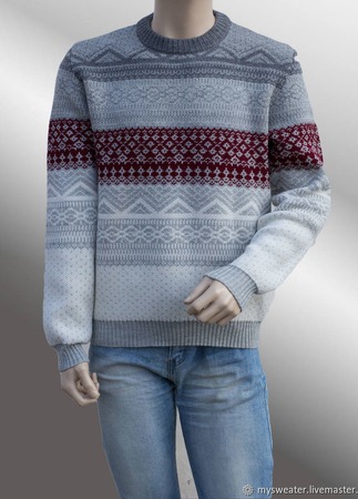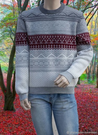 Вам знакомо выражение «И в пир, и в мир..» ? Это как раз про наш свитер. В любое время и в любом месте Вы будете выглядеть соответственно обстановке.. Серые полосы орнамента прекрасно сочетаются с центральной бордовой полосой. Гармония в одежде- гармония в душе.. Связан двойной вязкой из смеси мериноса и акрила, а значит теплый и комфортный. На заказ любой размер по Вашим меркам.