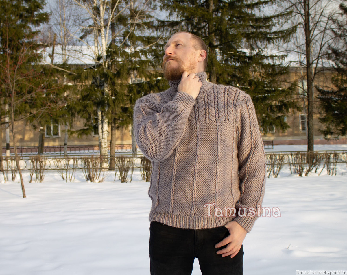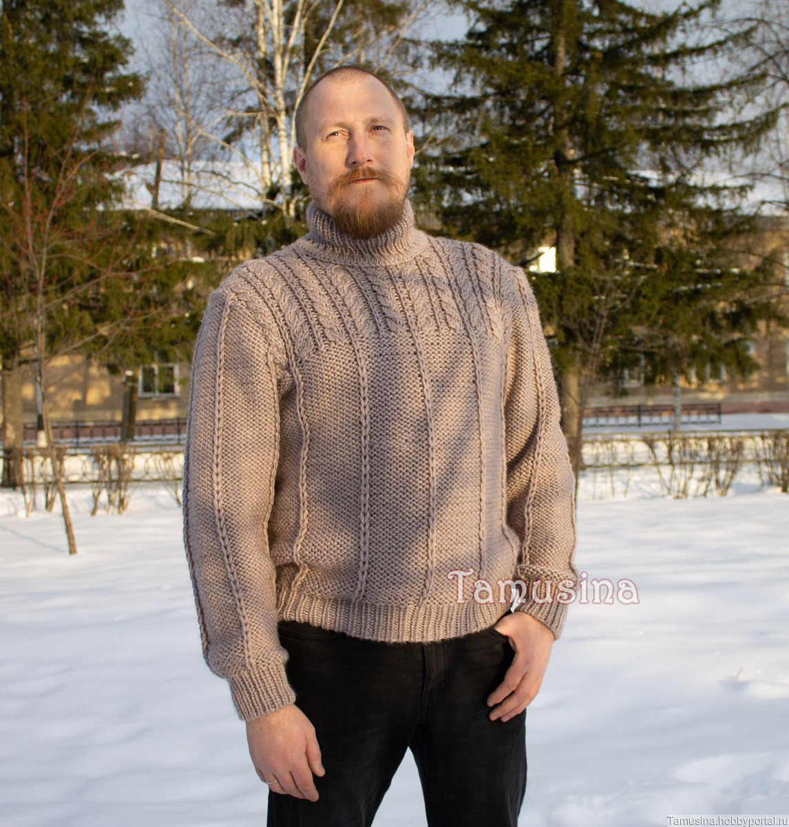 серый, бежевый, свитер, свитер вязаный, свитер спицами, свитер теплый, свитер с горлом, свитер с косами, свитер мужской, мужской джемпер, мужской свитер, свитер для мужчины, свитер купить