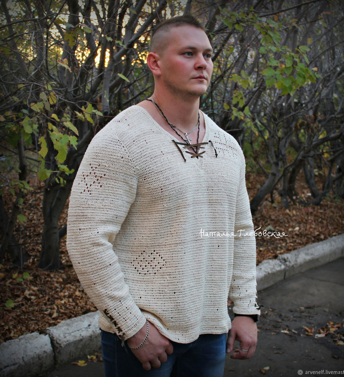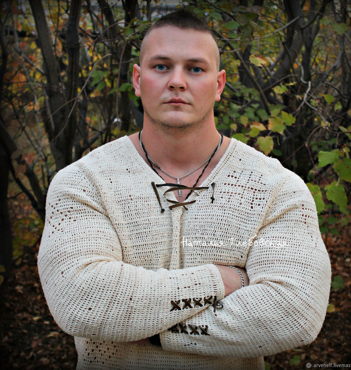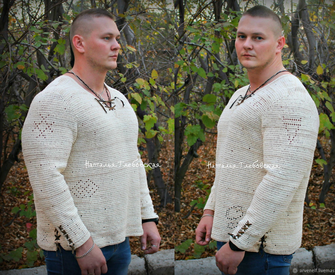 Не обычный заказ.. Эту рубашку заказала для любимого мужа на льняную свадьбу счастливая в браке молодая женщина.Мы с ней тщательно подбирали обережные знаки- она вложила всю свою любовь и заботу о муже в описание желаемой вещи.Что б рубашка была совсем индивидуальной, добавили и инициалы счастливого мужа- второй такой рубашки в целом свете больше нет)). Связать нужно было в сжатые сроки, я очень торопилась, боялась не успеть.. Успела))) Надеюсь, все хорошие мысли , которые я вплела в эту рубашку, и тепло моих рук еще больше скрепят эту замечательную молодую пару. Любите друг друга, и согревайте в любое время года- словами, мыслями, заботой, особенными вещами...